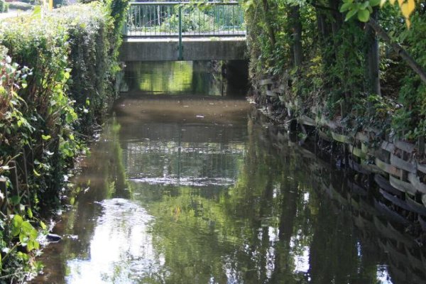 Denkmalbeschreibung: Noch im 19. Jahrhundert waren Kreuzauer und Niederauer Teich zwei voneinander getrennte Wasserläufe. Der Kreuzauer Teich besteht urkundlich belegt- seit 1303. Der Niederauer Teich lag ehemals auf dem Gebiet der Unterherrschaft Burgau, die Mitte des 18. Jahrhunderts eine Öl- und Mahlmühle betrieb. Die am Niederauer Teich Anfang des 19. Jahrhunderts bestehende Papiermühle Friedenau der Fam. Hoesch besteht heute noch, der Baukörper der Niederauer Mühle ist erhalten, im Ortskern Niederau besteht noch die 1836 durch die Gebrüder Schoeller gegründeten Tuchfabrikmühle. Der Kreuzauer/Niederauer Teich erstreckt sich von der Ableitung aus der Rur bis zum Übergang in Dürener Gebiet über eine Länge von 4-5 km. In der Höhe der Teichbrücke „Am Wassergarten“ zweigt das Gewässer „Spich“ ab und mündet in der Straße „Im Dröhl“ wieder in den Teich ein. Der Seitenarm ist als Flutgraben Teil der Wasserregulierung, ist Bestandteil der Funktionstüchtigkeit und damit Teil des Denkmals.