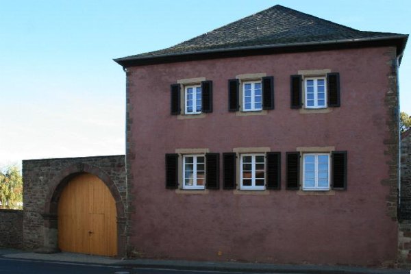 Ehem. Pfarrhaus (Bruchsteinhaus) in Kreuzau - Drove Denkmalbeschreibung: Bei dem Objekt handelt es sich um ein 2-geschossiges Bruchsteinhaus mit 5 Achsen an den Traufseite und Eingang in der Mittelachse. Zur Straßenseite ein hoher Sockel mit Freitreppe und 3 Achsen. Der Vorbau mit schmiedeeisernem Gitter. Das Gebäude trägt ein Walmdach, am Haus anschließend ein Torbogen rundbogig mit Kämpfern und Rotsandstein in der Bruchsteinmauer.