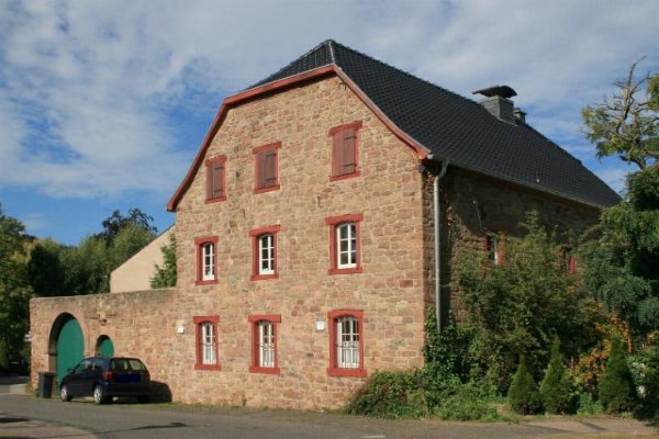 Bruchsteinhaus in Kreuzau Denkmalbeschreibung: Bei dem Objekt handelt es sich um ein 2-geschossiges giebelständiges Bruchsteinhaus mit 3 Achsen zur Giebel- und 4 Achsen zur Traufseite unter einem Krüppelwalmdach. Der Eingang zum Wohnhaus liegt auf der 5-achsigen Hofseite. Anschließend zum Straßenverlauf steht eine Mauer mit rundbogiger Tordurchfahrt, sowie ein rundbogiges Fußgängerpförtchen.