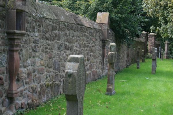 eingelassen sind. Ebenfalls auf dem Kirchhof frei aufgestellte
