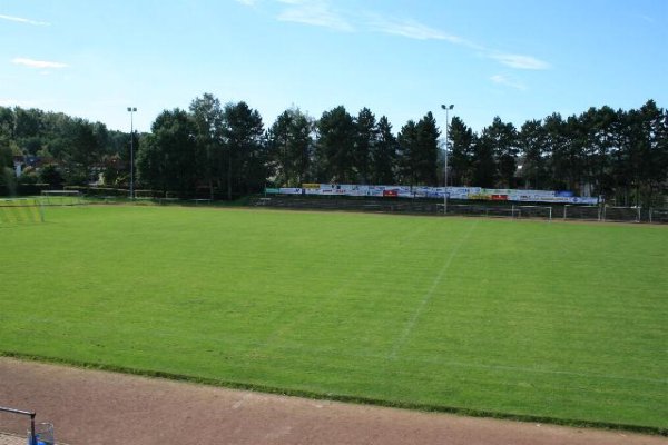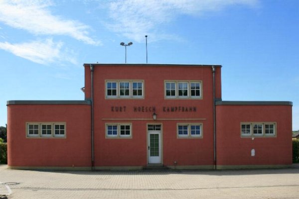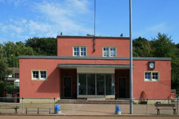 Denkmalbeschreibung: Bei dem Objekt handelt es sich um eine Sportanlage mit Clubhaus, seitlicher Toreinfahrt und Kassenhäuschen. Das Clubhaus ist ein klar gegliederter Bau mit einem 2-geschossigen Mittelteil, seitlich und platzwärts 1-geschossigen Vorbauten mit Treppenaufgängen und Flachdächern. Die Anlage spiegelt einen sehr seltenen Bauhausstil wieder.