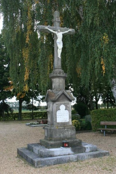 Friedhofskreuz in Kreuzau - Stockheim Denkmalbeschreibung: Das Friedhofskreuz aus Sandstein steht auf einem gotisierenden Sockel. Am Kreuz ein farbig gefasster Korpus aus Gusseisen. Im Mittelteil eine Inschrift: „Ich weiß, daß mein Erlöser lebt ich werde am jüngsten Tag von der Erde auferstehen. Jak. 19.2 errichtet 1905.