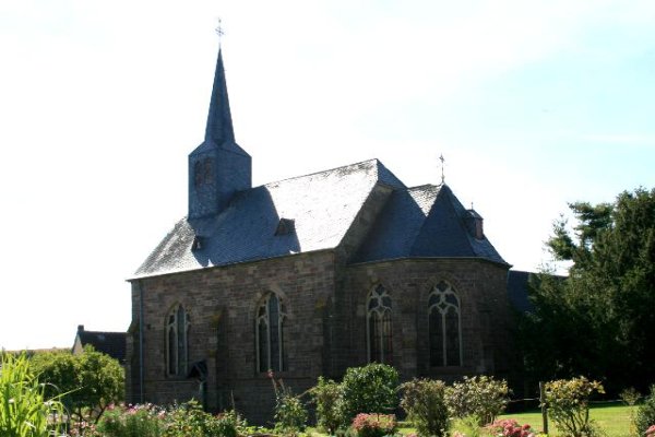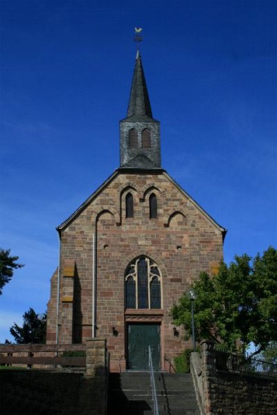 Denkmalbeschreibung: Bei dem Objekt handelt es sich um eine Saalkirche aus Sandstein bzw. Buntsandstein mit einem Satteldach und einem westlichen Dachreiter. Das Gebäude zeigt unregelmäßig gestockte Sandsteinquader, Werksteinteile aus Buntsandstein, 2 große Maßmauerfenster auf jeder Seite. Im Inneren der Kirche wird das Dach von einem Kreuzgewölbe getragen. Weiter sind innen Reste alter Ausstattung des Vorgängerbaues aus dem 17. Jahrhundert und ein geschnitzter Barockaltar zu finden. Zugehörig ein kleiner umgebener Friedhof.