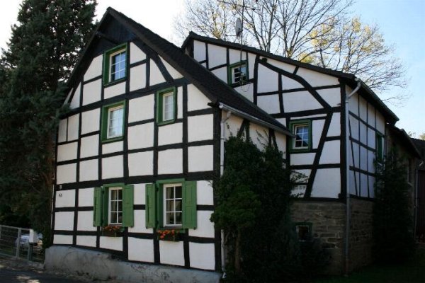 Hofanlage mit Wohn - Stall - Haus in Kreuzau - Untermaubach Denkmalbeschreibung: Bei dem Objekt handelt es sich um eine Hofanlage mit einem langgestrecktem Wohn-Stall-Haus aus dem 18. Jahrhundert mit einem Satteldach. Die 2. Hälfte wurde im 19. Jahrhundert auf einem Bruchsteinsockel in Stocksbauweise angebaut. Das Haus ist giebelständig, mit Eingang an der Traufseite. Liegende Gefache und eingehälste Ankerbalken sind im Fachwerk sichtbar. |