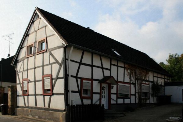 Fachwerkhaus in Kreuzau - Winden Denkmalbeschreibung: Bei dem Objekt handelt es sich um ein 1 ½-geschossiges Fachwerkhaus auf einem abgetreppten, verputzten Sockel. Das Haus war ein ehem. Wohn-Stall-Haus mit einer rückwärtigen Giebelseite aus Bruchstein wurde von einem Satteldach geschützt. Fenster sind mit Werksteingewänden versehen. Der Eingang liegt auf der Traufseite zum Hof.