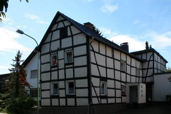 Fachwerk - Giebelhaus in Kreuzau - Drove Denkmalbeschreibung: Bei dem Objekt handelt es sich um ein 2-geschossiges Fachwerk-Giebelhaus in Stockwerkbauweise auf einem Bruchsteinsockel unter einem Satteldach.