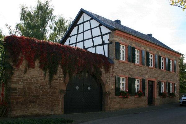 Bruchstein-Straßenfassade und hofseitigem Fachwerk aus kräftigem
