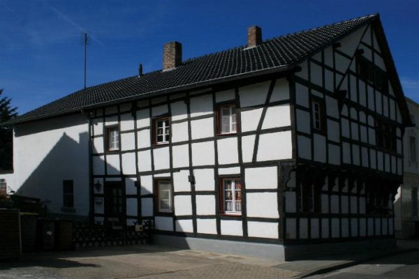 Fachwerk - Giebelhaus in Kreuzau - Drove Denkmalbeschreibung: Bei dem Objekt handelt es sich um ein 2-geschossiges Fachwerk-Giebelhaus. Das Haus wurde teilweise erneuert. An der linken Hausseite ein Anbau aus dem 18. Jahrhundert unter abgeschlepptem Satteldach. An der rückseitigen Giebelseite neuer Anbau. Das Haus bildet mit Haus Nr. 112 ein Doppelhaus.