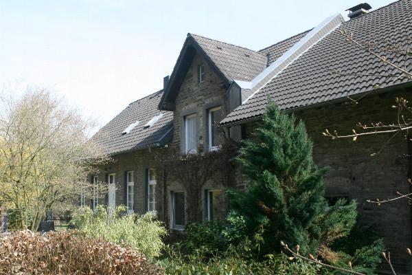 Forsthaus Wenau in Langerwehe - Wenau Denkmalbeschreibung: Zwei gegenüberliegende fast identische langgestreckte Wohnhäuser mit anschließendem Wirtschaftsteil. Aufgehendes Mauerwerk in Schevenhüttener - Bruchstein. Satteldach mit kleinem Quergiebel in der Mitte. Überwiegend originale Fensterteilung.