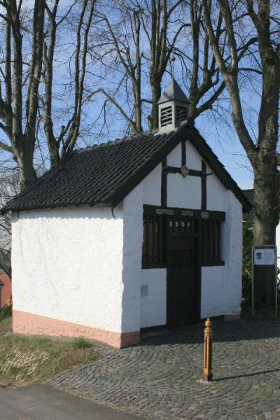 Norbertus - Kapelle in Langerwehe - Heistern Denkmalbeschreibung: Datierung über der Tür nach Clemen: „erbaut 1657, renoviert 1857“ abgängig; kleiner rechteckiger Bruchsteinbau, geschlämmt, vordere Giebelseite aus Fachwerk, Tür erneuert, Seitenfenster mit Holzgittern geschlossen; kleiner, neuer Dachreiter, Satteldach; im Inneren originalre Tonplattenboden, kleiner Barockaltar mit Muschelnische aus dem 17. Jh.; Madonnenstatue, farbig gefasst, in spätgotischen Formen.