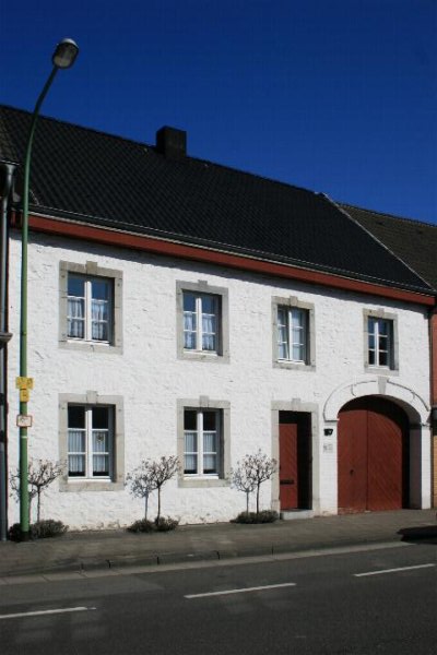 Wohnhaus in Langerwehe Denkmalbeschreibung: Zweigeschossiges traufständiges Wohnhaus entstanden in zwei Bauphasen. Ursprüngliches Gebäude bestand aus Fachwerk und kann aufgrund der noch vorhandenen Reste und deren Fachwerkzeichnungen dem 17./18. Jahrhundert zugerechnet werden. Die zweite Bauphase setzte 1843 ein und gestaltete das Gebäude völlig um. Die zur Straße zugekehrte Seite erhielt eine massive Bruchsteinfassade mit regelmäßigen Fensteröffnungen, die mit Blaustein eingefasst sind. Die Einfahrt in den Hof läßt eine überbaute korbbogige Tordurchfahrt zu. Während der Baumaßnahme in der Mitte des letzten Jahrhunderts wurde auch der ursprüngliche Grundriß verändert, doch blieben anschauliche Reste der alten Kaminwand erhalten, die eine Vorstellung vom ursprünglichen Herdraum zuläßt. Ehemals schlossen sich im rückwärtigen Hofbereich Stallungen und Scheune an, die heute noch vorhandenen Wirtschaftsgebäude sind modern und ohne Denkmalwert. Die beschriebene ehemalige Hofanlage gehört zu den wenigen noch verbliebenen Typischen Winkelhöfen, die früher der Straßenraum der Hauptstraße geprägt haben. Seine Erhaltung liegt aus volkskundlichen und ortsgeschichtlichen Gründen im öffentlichen Interesse.