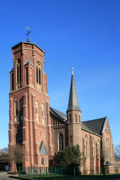Kath. Pfarrkirche St. Gregorius in Merzenich - Golzheim Denkmalbeschreibung Baujahr: 1896 / 1897 neugotische Backsteinkirche mit vorgestelltem Westturm und niedrigem Faltdach, die westlichen Langhausecken durch Treppentürme mit spitzen Helmen verstärkt, der Innenraum als 3-schiffige Hallenkirche ausgebildet mit Querschiff, 4 Joche, der gestelzte Chor mit 2 Jochen und 3/8-Schluß, die Bleiverglasung aus der Bauzeit. 1989 / 1990 umfassende Renovierung: Sanierung der Decken und Dächer der Sakristeikapellen, Grundarbeiten im Altarraum, Einbau einer (neuen) Heizungsanlage, Anstrich der Innenwände, Neugestaltung der Kreuzwegmosaiken durch farbig neue Rahmung, neuer gotisierender Plattenbelag, Entfernung des modernen, nach 1962 eingebauten Inventars und Ersetzung in gotisierenden Formen (Ambo, Sakramentsstehle, Bänke (teilweise), Beichtstuhl), Altar ebenfalls Neuanschaffung; 1994 Überarbeitung der Glocken, 1999 / 2000 farbige Neufassung der Muttergottes-Figur. Die Informationen stammen aus den Mitteilungsblättern der Gemeinde Merzenich. |