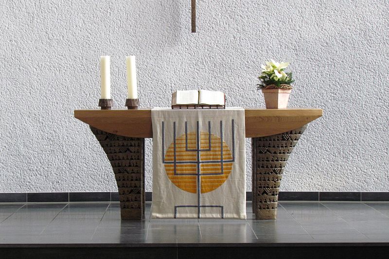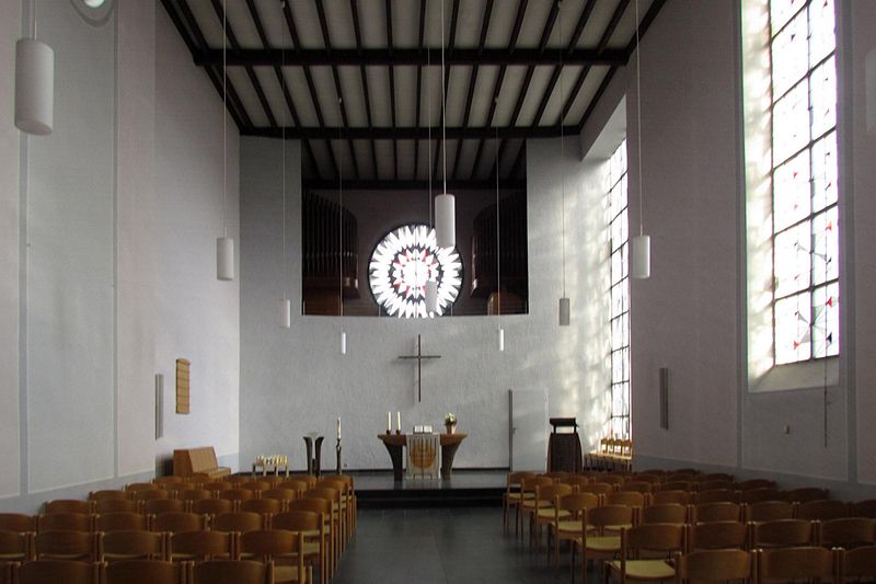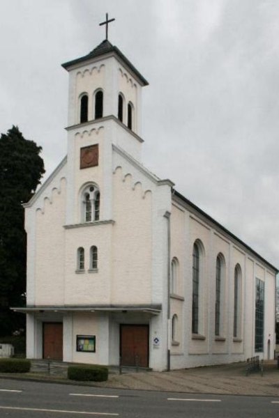 Beschreibung: Die Evangelische Kirche hat ihren Standort im Stadtteil Hünshoven in der Stadt Geilenkirchen in Nordrhein-Westfalen. Sie steht als Baudenkmal unter Denkmalschutz in zentraler Lage von Geilenkirchen-Hünshoven an der Konrad-Adenauer-Straße 85. Das Gemeindehaus liegt in unmittelbarer Nähe. Geschichte: In der zweiten Hälfte des 16. Jahrhunderts war in Hünshoven und Geilenkirchen eine kleine reformierte Gemeinde entstanden. 1720 konnte in Hünshoven ein Predigthaus erworben werden, das einen Betsaal und eine Wohnung für den Geistlichen enthielt. 1804 folgte der Kauf eines Pfarrhauses. Mitte des 19. Jahrhunderts erhielt die Gemeinde mehrere Vermächtnisse für den Ausbau und die Verschönerung des Betsaales. Eine erste Untersuchung durch den Aachener Privatbaumeister Faulenbach ergab, dass ein solcher Ausbau zu keinem befriedigenden Ergebnis führen würde. Daraufhin entschloss sich die Gemeinde zum Abriss des Predigthauses und zum Neubau einer Kirche an gleicher Stelle. Mit der Ausarbeitung der Pläne für dieses Neubauprojekt wurde wiederum Faulenbach beauftragt. Obwohl die königliche Regierung in Aachen eine neugotische Kirche mit Gewölbesystem präferierte, hielt die Gemeinde, nicht zuletzt aus Kostengründen, an dem einfacheren Entwurf von Faulenbach fest. Nach mehrjährigen Auseinandersetzung um die Baugenehmigung konnte schließlich 1865 mit dem Neubau der Kirche nach dem von der Gemeinde vorgesehenen Entwurf begonnen werden. Architektur: Die 1866 eingeweihte Backsteinkirche stellte eine einfache Langhausanlage mit jeweils drei rundbogigen Fenstern an den beiden Längsseiten dar. Der in der Gebäudelängsachse stehende Westturm war in das Schiffdach eingezogen. Ein kleiner Vorbau nahm ursprünglich das Mittelportal der Kirche auf. 1956 erhielt die Evangelische Kirche Geilenkirchen-Hünshoven ihre heutige Gestalt, die wesentlich vom Ursprungszustand abweicht. Nach Abriss der eingezogenen Chorapsis wurde das Kirchenschiff deutlich verlängert. An der Westseite fiel das bisherige Mittelportal zugunsten von zwei Seiteneingängen weg. Im Zuge der Umbaumaßnahmen erhielt der Innenraum auch eine neue Ausstattung. Ein seitlich angefügter Gebäudekomplex mit Küsterwohnung und Gemeinderäumen ergänzte die Kirche schließlich zu einer L-förmigen Bauanlage. Eine vorerst letzte Renovierung des Geilenkirchener Kirchraums erfolgte 1998: Die dunkelbraunen Bänke wurden durch helle Stühle ersetzt; der Mittelgang, der das Bild der Kirche vor dem Krieg prägte, wurde wieder hergestellt; eine Fußbodenheizung wurde unter den neuen Granitboden gelegt; die Fenster wurden isoliert; die ehemals weißen Wände wurden hellgrau gestrichen. Ausstattung: * Im Jahre 2000 schuf der Künstler Michael Franke aus Erkelenz neue Prinzipalstücke aus Bronze und Holz: Abendmahltisch (Altar), Kanzel, Kreuz und Osterleuchter. Das Taufbecken wurde aus Glas hergestellt. Schließlich wurden neue Paramente angeschafft, die die bereits vorhandenen in den entsprechenden liturgischen Farben ergänzten. * Die Orgel mit 14 Registern und elektr.Traktur aus 1956 wurde von Fa. Peter aus Köln gebaut. * Im Kirchturm befinden sich drei Glocken. * Die Kirche besitzt eine Buntverglasung Quellenhinweis: * Dritte Ausgabe 1994: Handbuch des Bistums Aachen ISBN 3-87448-172-7 * Verzeichnis der evangelischen Kirchenbauten im Rheinland 1860-1914. Teil II * Baudenkmal Geilenkirchen Nr. 28, Eintrag vom 2. Mai 1983 * Evangelische Kirche in Geilenkirchen * Webseite der Stadt Geilenkirchen Hinweis zum Gemeindebüro * Evangelische Kirche (Hünshoven) bei Wikipedia