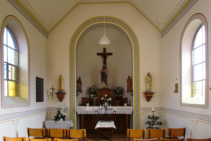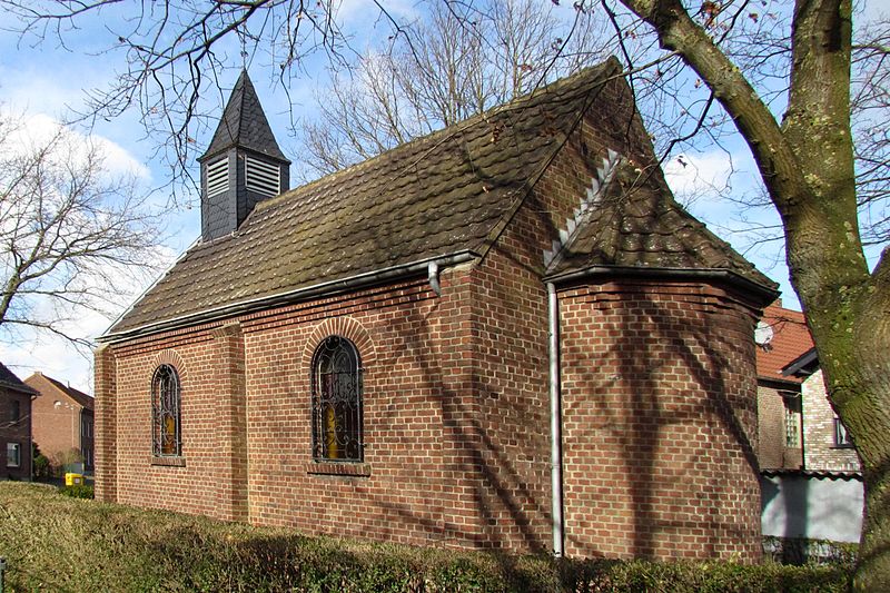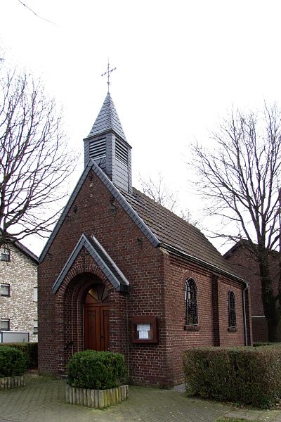 Foto: Jakob Welters aus Pütt Beschreibung: Die Herz-Jesu Kapelle befindet sich im Ortsteil Waldenrath-Pütt der Stadt Heinsberg in Nordrhein-Westfalen. Sie steht in Pütt in der Ortsmitte. Geschichte: Die erste Kapelle wurde um 18. Jahrhundert von den Anwohnern zum gemeinsamen Gebet des Rosenkranzes an Sonntagen, zur Taufe und zum Totengedenken gebaut. Im Kriegsjahr 1945 wurde sie völlig zerstört. Im Jahr 1951 wurde sie aus Eigenmitteln wieder aufgebaut und 1951 benediziert. Zum 50-jährigen Jubiläum im Jahr 2001 wurde eine umfangreiche Restaurierung der Kapelle durchgeführt. Insgesamt wurden 657 Arbeitsstunden von den Mitgliedern der Kapellengemeinschaft erbracht. Architektur: Die Kapelle ist ein kleiner Backsteinbau in zwei Fensterachsen mit einer kleinen Apsis. Die Kapelle wird von einem Satteldach bedeckt. Darauf steht ein vierseitig, beschieferter Dachreiter über dem Giebel. Der wird von einem Kapellenkreuz und einem Wetterhahn bekrönt. Im Inneren der Kapelle ist der Fußboden aus Natursteinplatten. Wände und Decke sind verputzt und mit Bordüren und einem Spezialanstrich versehen. Ausstattung * Eine Gedenktafel erinnert an die Verstorbenen des Zweiten Weltkrieges * Im Dachreiter befindet sich eine Glocke aus der Erbauerzeit. * Die Kapelle besitzt eine Buntverglasung aus verschieden farbigen Glasscheiben. * In der Kapelle stehen ein Altar aus Eiche, ein Kruzifix, einige Heiligenfiguren. Quellenhinweis: * Dritte Ausgabe 1994: Handbuch des Bistums Aachen ISBN 3-87448-172-7 * Herz-Jesu-Kapelle (Pütt) bei Wikipedia