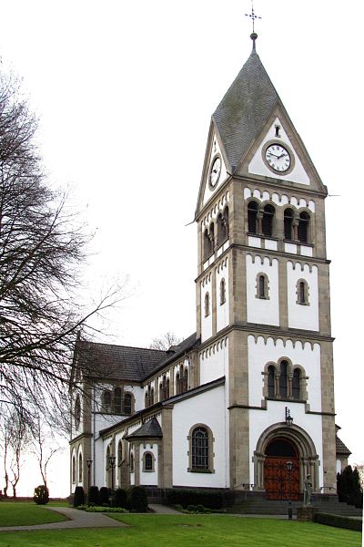 Beschreibung: Die Kirche St. Josef befindet sich im Ortsteil Laffeld der Stadt Heinsberg in Nordrhein-Westfalen. Sie steht als Baudenkmal unter Denkmalschutz. Die basikale Kirche steht an der Maarstraße, in freier Lage, etwa 100 m von der Straße entfernt, auf einem leicht ansteigenden Gelände. Geschichte: Eine Kapelle aus 1787 wurde 1850 erweitert und Ende des 19. Jahrhunderts durch eine neue Kirche ersetzt. Die Baupläne für den Neubau von Architekt Prof. Josef Kleesattel aus Düsseldorf wurden vom Kölner Generalvikariat genehmigt. Am 30. November 1905 wurde die neue Kirche geweiht. Die alte Kapelle wurde 1908 zum Abbruch freigegeben. Im Februar 1945 wurde die Kirche durch Kriegseinwirkungen stark beschädigt. Der Architekt Winter aus Stolberg leitete die Reparaturarbeiten, die erst 1958 angeschlossen waren. Umbauarbeiten im Chor wurden 1968 von Wilhelm Andermahr aus Wassenberg geplant. Architektur: Die Kirche ist eine Basilika mit einem Querschiff, einem Chorjoch und einer Halbkreisapsis. Das Gebäude ist nach Norden orientiert. Der viergeschossige Südturm trägt einen Rombenhelm. Dieser wird von einem Turmkreuz und einem Wetterhahn bekrönt. Ausstattung: * Die Orgel mit 7 Registern, mit einer elektrischen Traktur wurde im Jahr 1960 gebaut. * Am Kirchturm ist eine Turmuhr angebracht. * Im Glockenturm befinden sich drei Glocken aus dem Jahr 1952. * Mehr Infos über die Glocken von Laffeld im Glockenbuch Seite 195. * Die Kirche besitzt eine Buntverglasung. * In der Kirche stehen ein Altar, ein Taufstein, ein Chorkreuz, zwei Seitenaltäre, ein Beichtstuhl. Quellenhinweis: * Dritte Ausgabe 1994: Handbuch des Bistums Aachen ISBN 3-87448-172-7 * Band Acht 1906: Die Kunstdenkmäler der Rheinprovinz von Paul Clemen * Webseite von Ort und Kirche Laffeld * Denkmalliste Heinsberg Nr. 45, Eintrag: 19. Januar 1984 * Glockengeläut der Kirche St. Josef * St. Josef in der Gemeinschaft der Gemeinden Heinsberg-Waldfeucht * St. Josef (Laffeld) bei Wikipedia