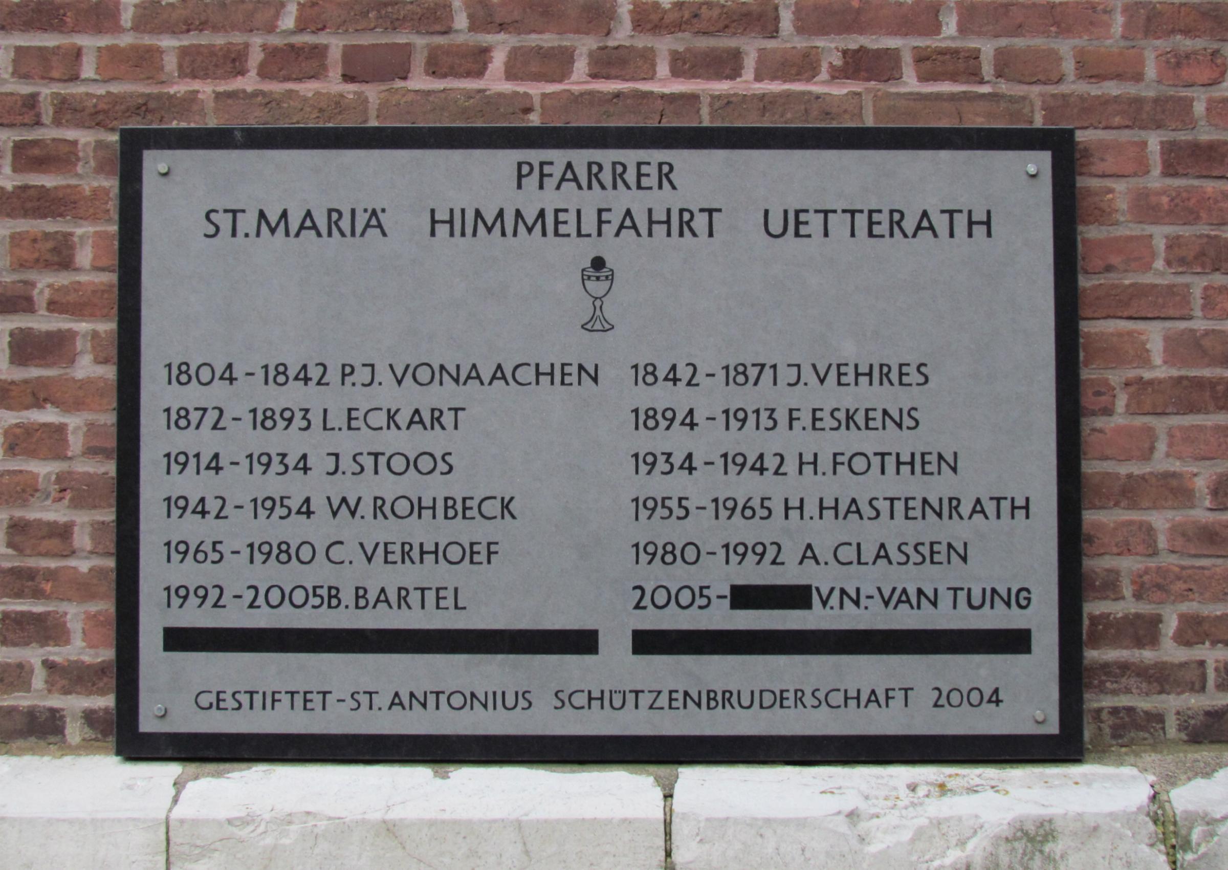 Standort: Uetterather Dorfstraße, 52525 Heinsberg - Uetterath GPS: 51° 01′ 17″ N, 06° 08′ 03″ O Zuständigkeit: Kirchengemeinde Uetterath Baujahr: 1883 Einweihung: 29. Mai 1893 Pfarrgemeinde: St. Mariä Himmelfahrt Uetterath