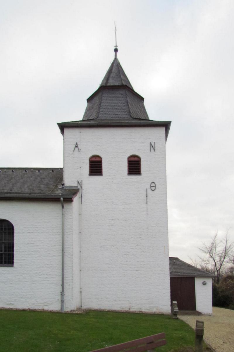 Standort: Die Alte Kirche, heute Friedhofskapelle hat ihren Standort an der Annabergstraße, im Stadtteil Frelenberg in der Stadt Übach-Palenberg, im Kreis Heinsberg. Sie steht als Denkmal Nr. 2 in der Denkmalliste der Stadt Übach-Palenberg unter Denkmalschutz. Geschichte und Architektur: Etwa im 15./16. Jahrhundert wurde eine Bruchsteinkirche gebaut. Im 17. Jahrhundert verlängerte man sie im Westen und baute einen mächtigen Turm. Im 19. Jahrhundert baute man im Osten einen neuen Chor und eine Sakristei. Die Kirche war trotz der Erweiterungen für die Gemeinde zu klein. 1952 überlegte man, die Kirche durch einen Querbau zu vergrößern. Doch entschied man sich schon bald für den Neubau einer Kirche in Ortsmitte. Die alte Kirche, umgeben vom Friedhof wurde als Friedhofskapelle weiterbenutzt. Nach dem Umbau und der Abtrennung eines Teiles als Leichenhalle wurden 1977 und 1980 Restaurierungen des Gebäudes vorgenommen. Seit dieser Zeit wird an bestimmten Tage die hl. Eucharistie in ihr gefeiert. Bei dem Gebäude handelt es sich um einen schlichten Saalbau mit einem dreigeschossigen Turm. Der achtseitigen Helm ist auf halber Höhe durch ein Gesims gegliedert. Der Westteil und der dreigeschossige Turm sind aus dem 18. Jahrhundert; der Mittelteil des Langhauses aus Bruchstein ist noch spätgotisch. Die Ostpartie wurde im 19. Jahrhundert ausgebaut. einschiffiger Bau in Bruchstein und Backstein, mit einem Westturm und einem späteren Chorbau, weiß geschlämmt. Um die Kirche herum liegt der Friedhof mit einigen alten Steinen vom 17. Jahrhundert etwa an. Quellenhinweis: * Dritte Ausgabe 1994: Handbuch des Bistums Aachen ISBN 3-87448-172-7 S. 783 * Beschreibung Denkmal Nr. 2 Ausstattung und Info: * In der Kapelle ein Altar, ein Tabernakel, ein Verkündigungspult. * Eine elekronische Orgel mit einem Barockgehäuse stammt aus dem 18. Jahrhundert * Im Kirchturm befindet sich eine Glocke aus dem 14. Jahrhundert. * Mehr Infos zu den Glocken von Frelenberg im Verzeichnis Glocken in der Region Heinsber * Glockengeläute der Alten Kirche * Chronik der Kirche alt und neu in Frelenberg * Denkmalliste Übach-Palenberg, Nr. 2, Eintrag: 23. März 1984 * Kirche auf den Fundamenten der Vorgängerkirche erbaut (Super Sonntag 10.07.2016)