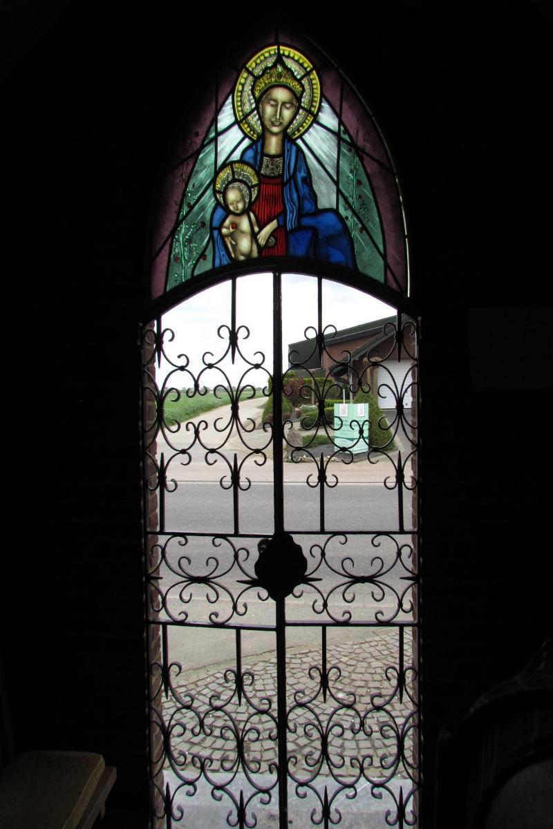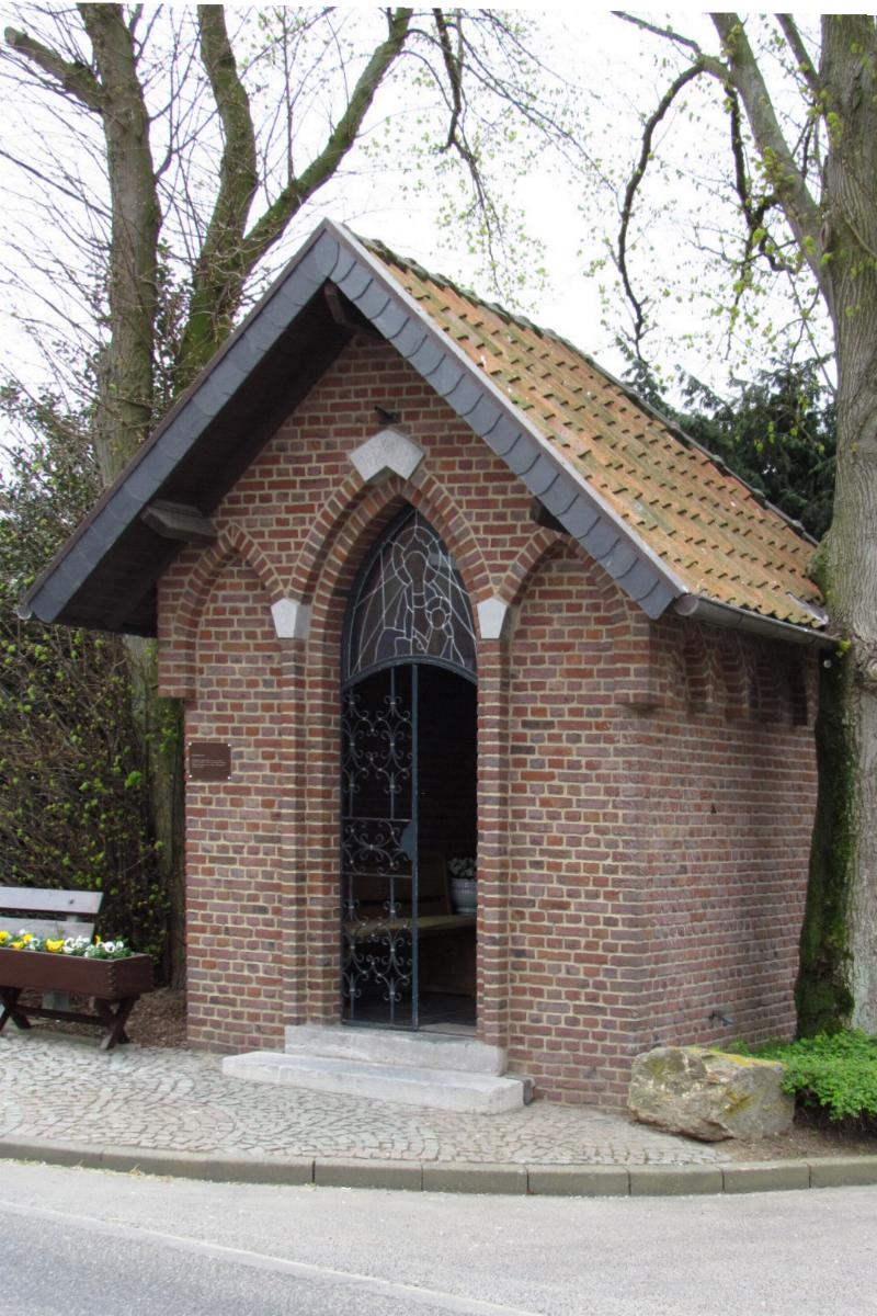 Stein. Architektur: Die Kapelle ist ein kleiner Backsteinbau mit einer spitzbogigen Öffnung. Eine schmiedeeiserne Türe verziert den Eingang. Das Satteldach ist ziegelgedeckt. Ausstattung: * In der Kapelle steht ein gemauerter Altar mit der Figur der hl. Gottesmutter. * Über der Eingangstüre befindet sich eine Buntverglasung Quellenhinweis: * Dritte Ausgabe 1994: Handbuch des Bistums Aachen ISBN 3-87448-172-7 S. 686