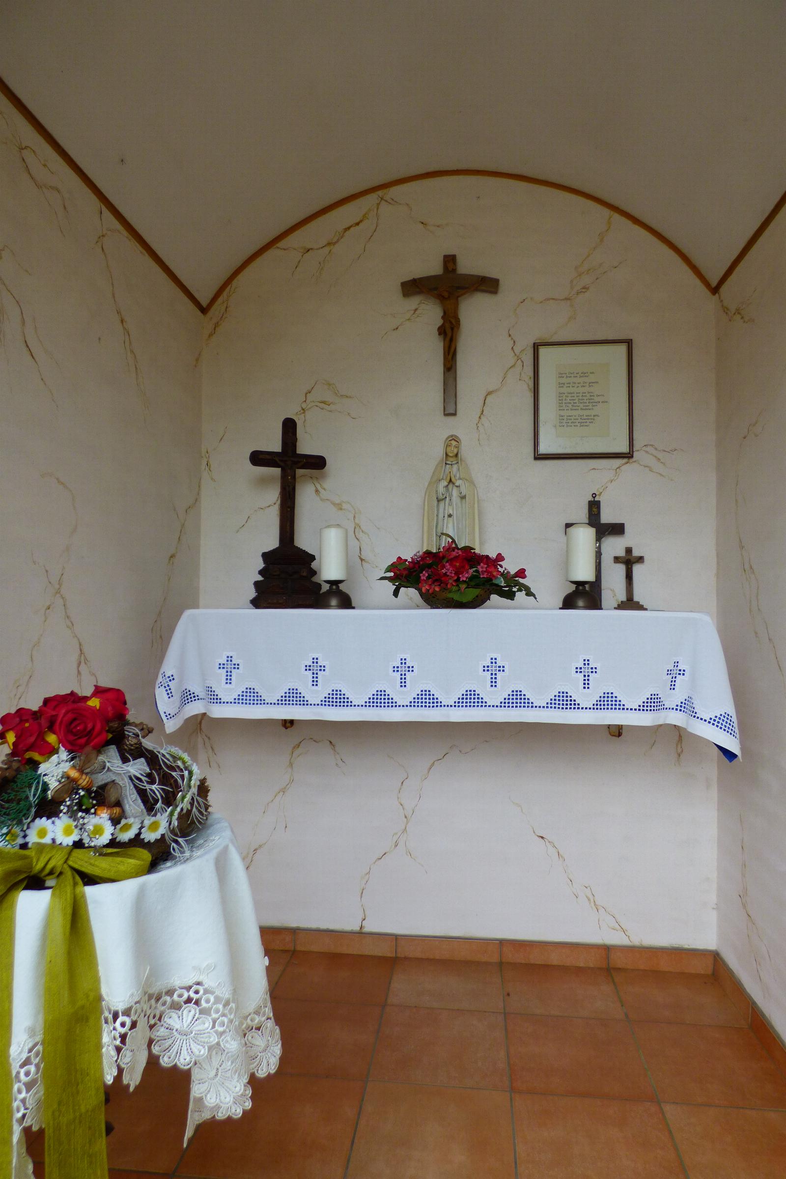 Standort: Anton - Laumen - Straße / Ahornstraße, 52525 Waldfeucht - Hontem GPS: 51° 03′ 09,4″ N, 6° 01′ 45,2″ O Zuständigkeit: Nachbarschaft Baujahr: 20. Jahrhundert Pfarrgemeinde: St. Klemens Braunsrath |
