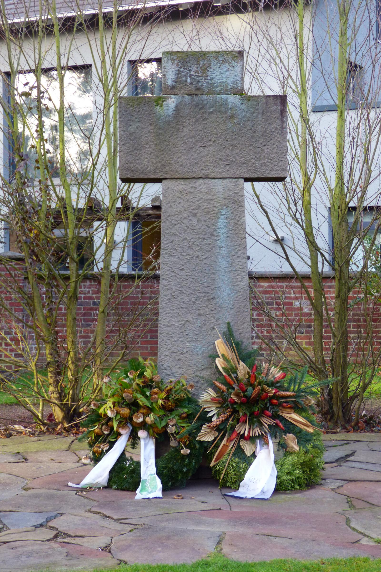 Standort: Das Ehrenmal befindet sich auf dem Friedhof an der Friedhofstraße in Gerderath, in der Stadt Erkelenz. Es ist Bestandteil der Friedhofanlage und des Ehrenfriedhofs. Beschreibung: Auf diesem Friedhof wurde 1960 der Ehrenfriedhof und das Ehrenmal errichtet. Das Ehrenmal des Ehrenfriedhofs hat eine Höhe von 2,55 m Höhe und eine Breite von 1,18 m. Das Kreuz besteht aus rohbeschlagenem Sandstein. Neben dem Hochkreuz stehen auch 22 Grabsteine mit den Namen der 36 Opfer des 2. Weltkrieges. Die Einweihung erfolgte 1960. Am Volkstrauertag erfolgen an diesem Ehrenmal Kranzniederlegungen zu Ehren der Verstorbenen. Quellenhinweis: * Schriftenreihe des Heimatvereins der Erkelenzer Lande e.V. Nr. 17 Zeichen am Wege S. 260 von Paul Blaesen * Kriegsgräberstätte auf dem Friedhof in Gerderath (Volksbund Deutscher Kriegsgräberfürsorge e.V.)