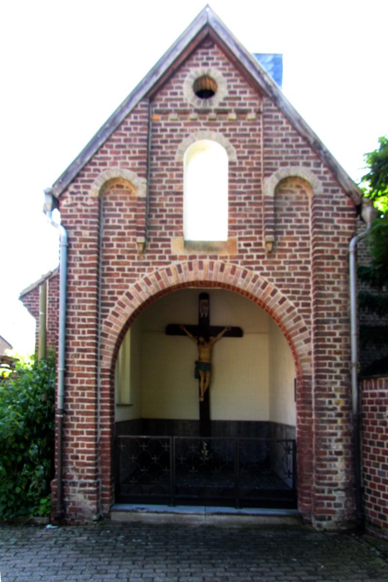 Standort: Die Kriegergedächtnis - Kapelle hat ihren Standort am Pfarrhaus neben der Kirche in Kückhoven, in der Stadt Erkelenz. Geschichte und Architektur Die Kapelle ist ein kleiner Backsteinbau aus dem 20. Jahrhundert. Sie hat eine Höhe von 6,40 m, eine Breite von 3,70 m und eine Tiefe von 4,45 m. Die spitzgiebelige Front ist rundbogig geöffnet unter einem Satteldach. In der Kapelle hängt ein großes Kreuz. An der rechten Kapellenwand ist eine Inschrifttafel angebracht, die den Toten der Kriege 1914 - 1918 und 1939 - 1945 gewidmet ist. Quellenhinweis: * Dritte Ausgabe 1994: Handbuch des Bistums Aachen ISBN 3-87448-172-7 S. 669. * Schriftenreihe des Heimatvereins der Erkelenzer Lande e.V. Nr. 17 Zeichen am Wege S. 208 von Paul Blaesen * Kriegsgräberstätte auf dem Friedhof in Kückhoven (Volksbund Deutsche Kriegsgräberfürsorge e.V.) * Gefallenendenkmäler in Kückhoven