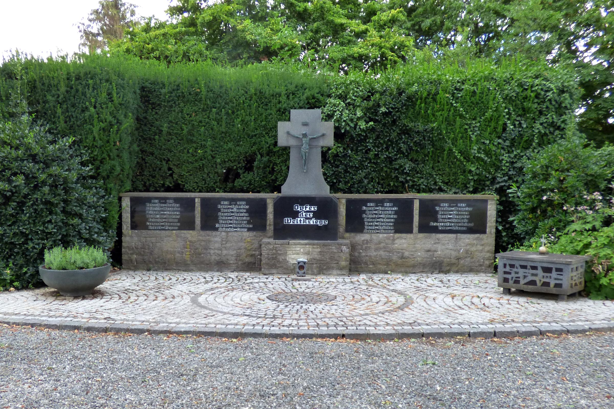 Standort: Das Ehrenmal befindet sich auf dem Friedhof an der Kirche, im Ortsteil Kreuzrath, in der Gemeinde Gangelt. Geschichte: Das Ehrenmal besteht aus einer Natursteinwand und mehreren Namenstafeln. Es wurde zu Ehren der Gefallenen und der Vermißten des Ersten und Zweiten Weltkrieges errichtet. Es soll den Überlebenden zur Mahnung und den Verstorbenen zur Ehre dienen.