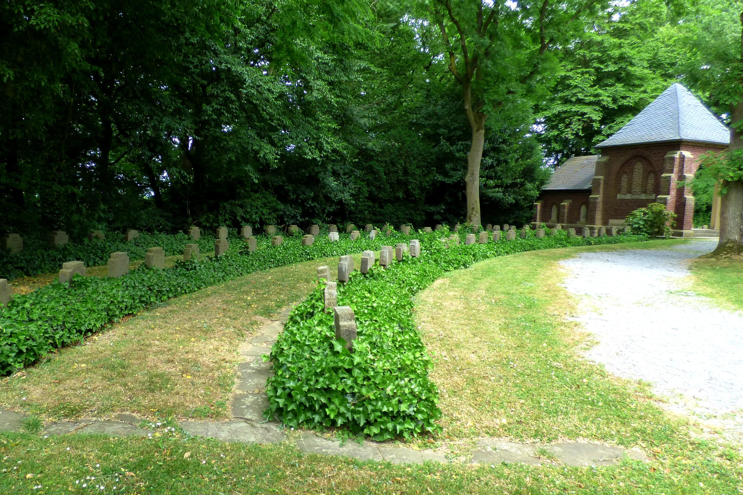 Standort: Die Ehrenkapelle befindet sich auf dem Gelände der Kreisgymnasiums an der Linderner Straße, in der Stadt Heinsberg. Beschreibung: Bei der Anlegung und Gestaltung des Ehrenfriedhofs wurde auch die Ehrenkapelle errichtet. Sie wurde zu Ehren der Gefallenen des Ersten und Zweiten Weltkrieges errichtet und soll den Überlebenden zur Mahnung und den Verstorbenen zur Ehre dienen. Auf dieser Kriegsgräberstätte ruhen 170 Kriegstote des I. und II. Weltkrieges. Quellenhinweis: * Kriegsgräberstätte in Heinsberg Volksbund Deutscher Kriegsgräber e.V.