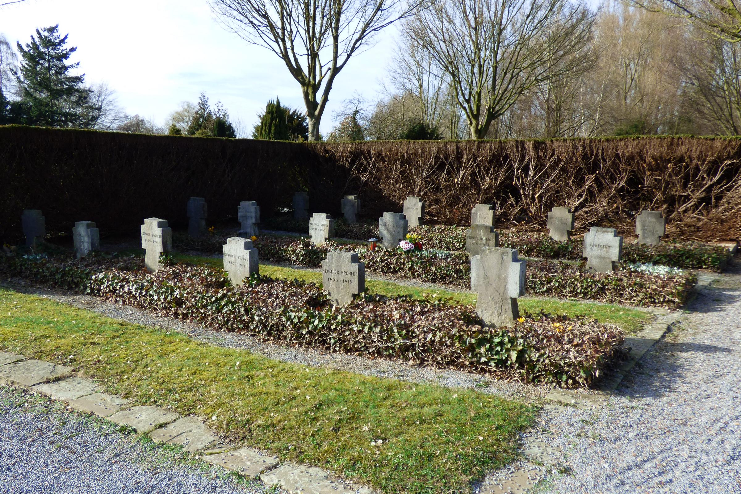 Standort: Der Ehrenfriedhof befindet sich auf dem Friedhof an der Oberstraße, im Stadtteil Kempen in der Stadt Heinsberg. Beschreibung: Auf dem Friedhof in Kempen befindet sich auch der Ehrenfriedhof. Hier stehen in drei Grabreihen die Grabkreuze der 17 deutschen Kriegstoten des Zweiten Weltkrieges die hier ihre letzte Ruhe fanden. Der Ehrenfriedhof ist Bestandteil der Friedhofanlage. * Kriegsgräberstätte in Kempen Volksbund Deutsche Kriegsgräberfürsorge e.V.
