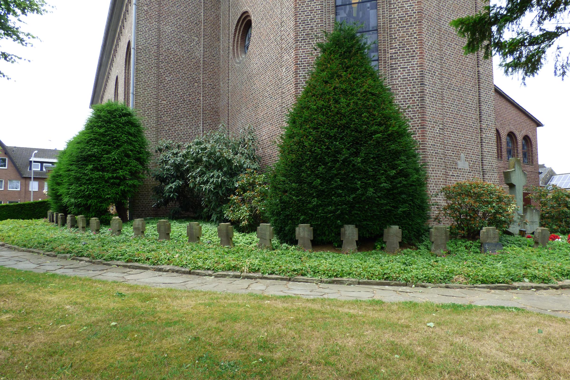 Standort: Der Ehrenfriedhof befindet sich an der Pfarrkirche, im Stadtteil Kirchhoven, in der Stadt Heinsberg. Beschreibung: Die Grabsteine stehen im Halbkreis um den Chor der Kirche. Auf dieser Kriegsgräberstätte ruhen 25 deutsche Kriegstote. Der Ehrenfriedhof ist Bestandteil der alten Friedhofanlage an der Waldfeuchter Straße. * Kriegsgräberstätte in Kirchhoven bei Volksbund Deutscher Kriegsgräber e.V.