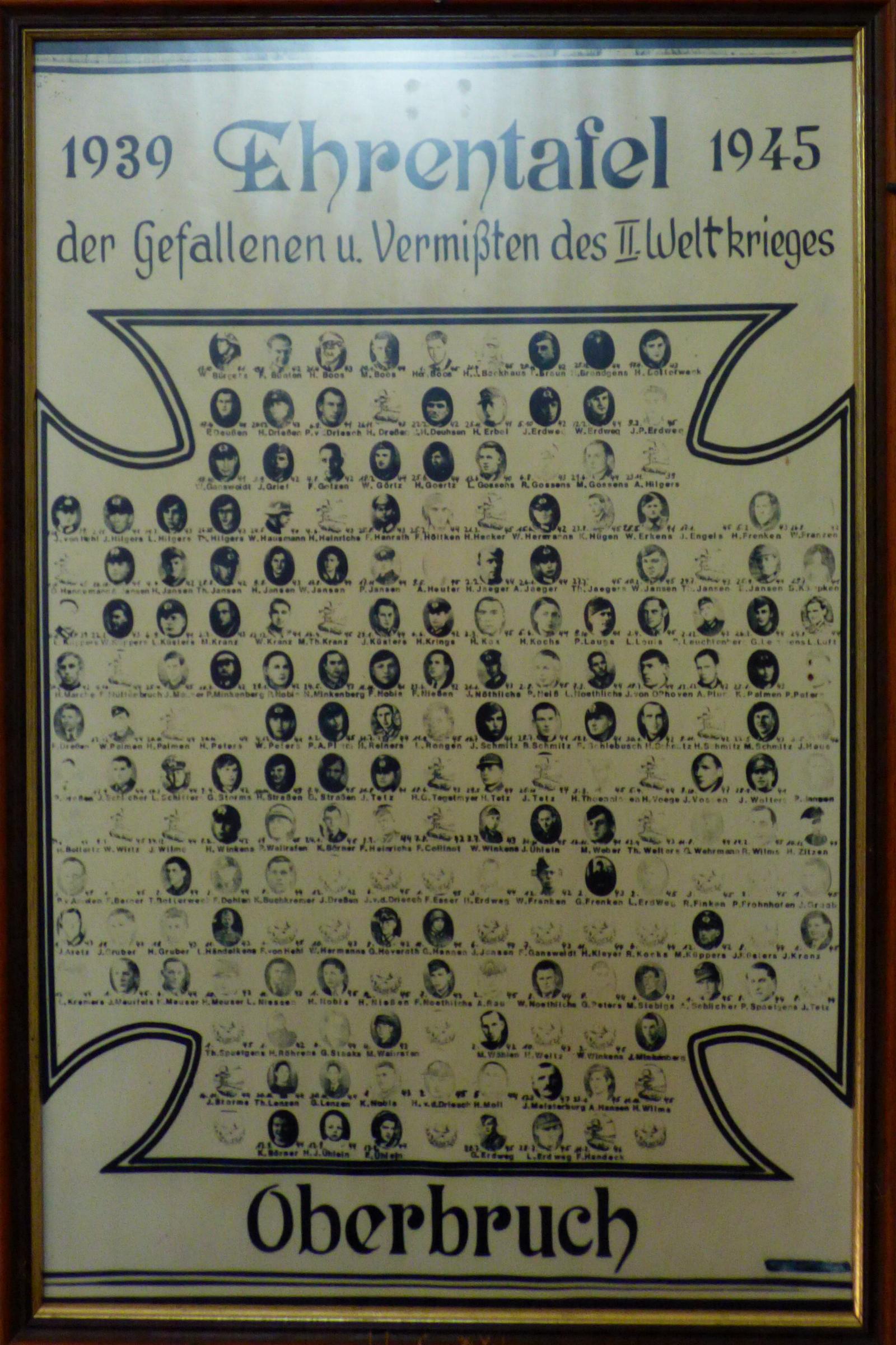 Ehrentafel Oberbruch 1939 - 1945 in der Kapelle Kranzes