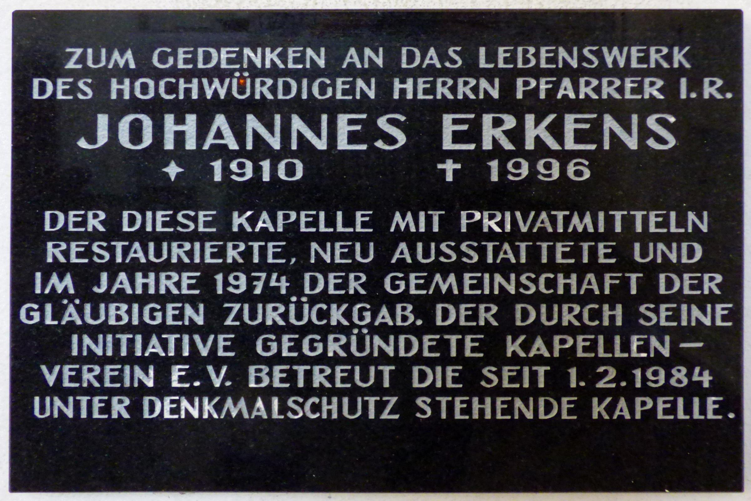 Gedenktafel Johannes Erkens in der Kapelle Kranzes