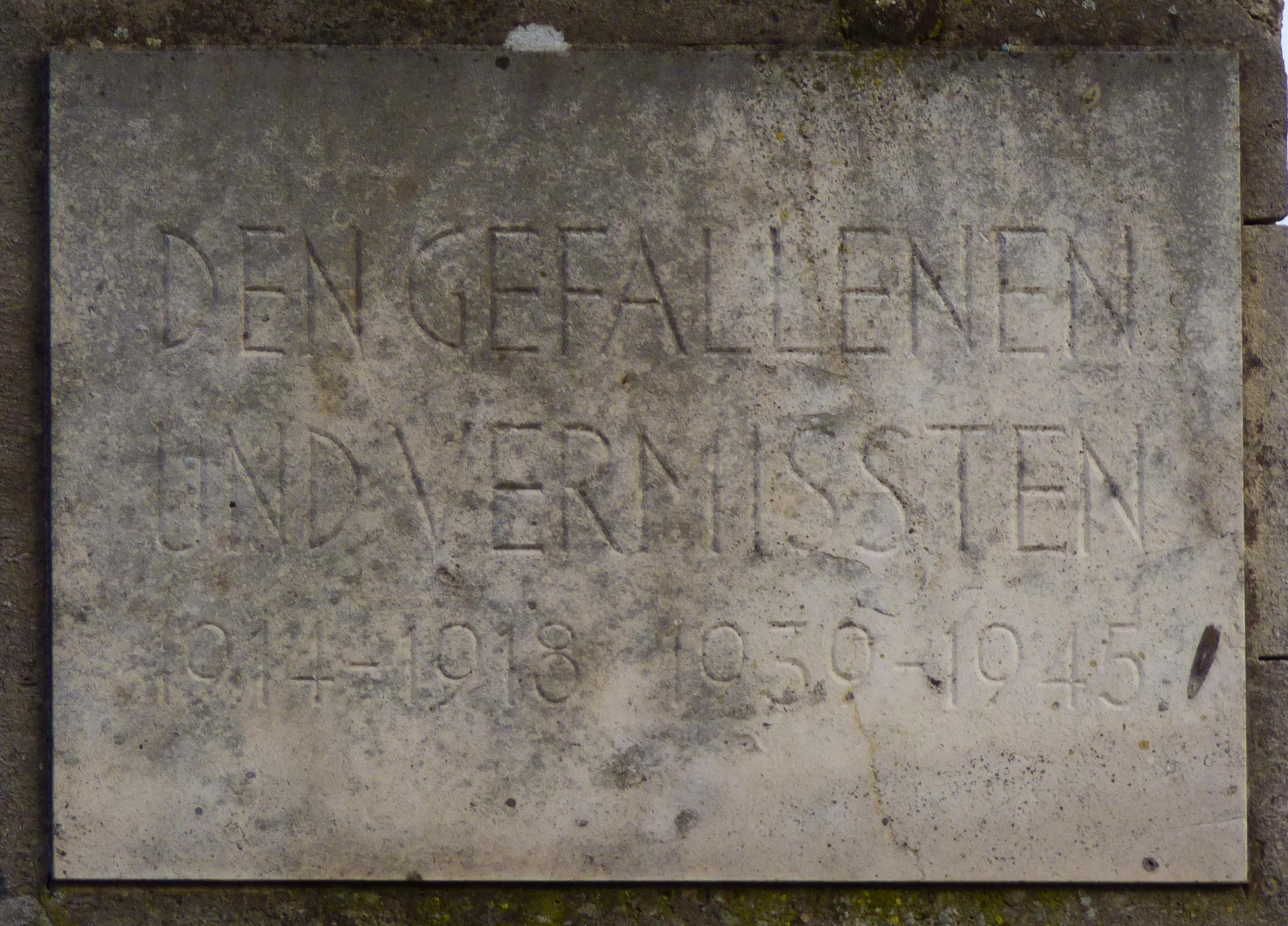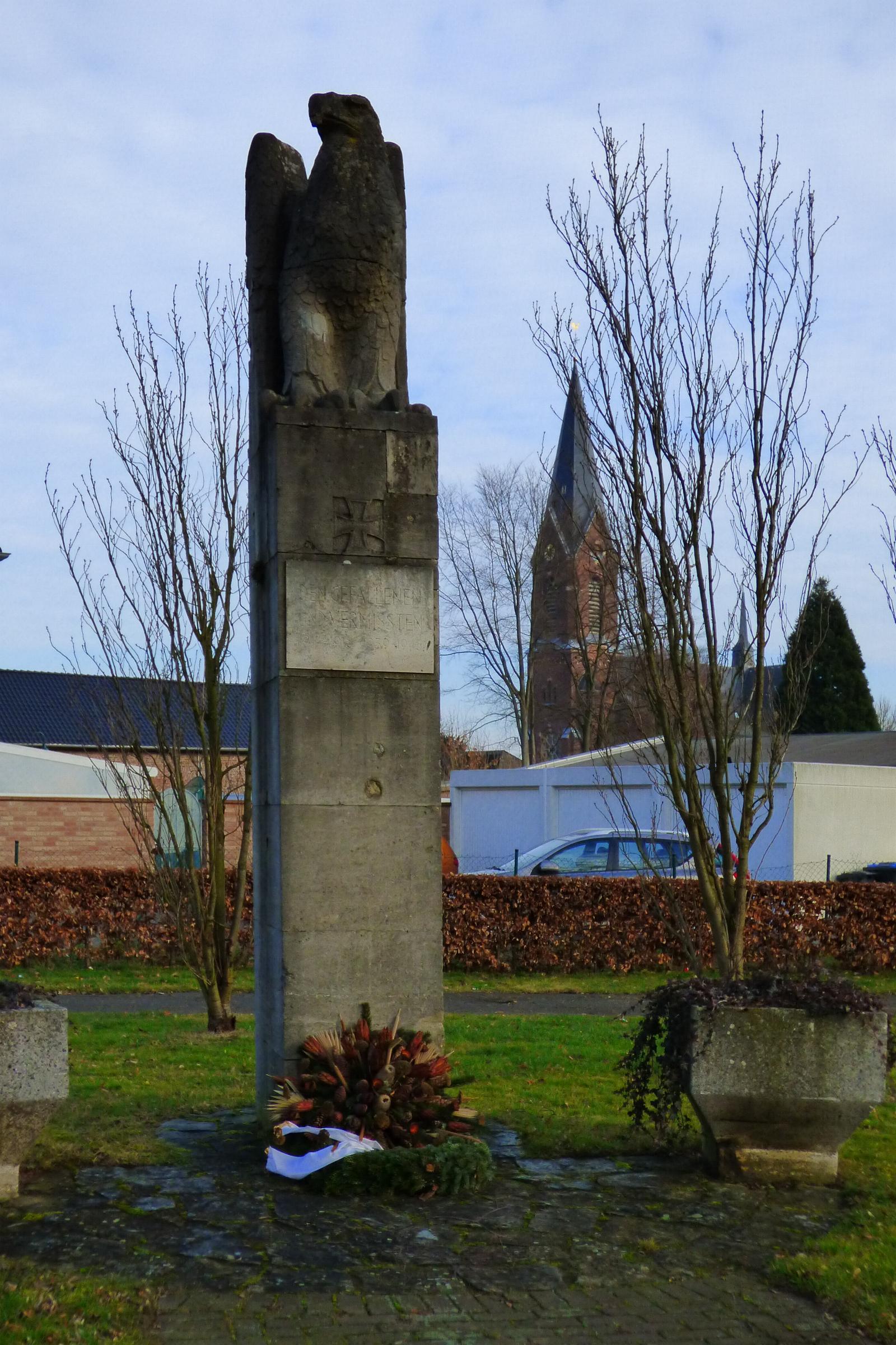 Standort: Das Ehrenmal hat seinen Standort an der Ecke Ingelmannstraße / Breite Straße, im Stadtteil Hilfarth, in der Stadt Hückelhoven. Beschreibung: Bei dem Ehrenmal handelt es sich um eine ca. 4,00 m hohe Betonsäule mit einem Adler. In der Mite der Säule ist eine Inschrifttafel angebracht. DEN GEFALENEN UND VERMISSTEN 1914 - 1918 1939 - 1945