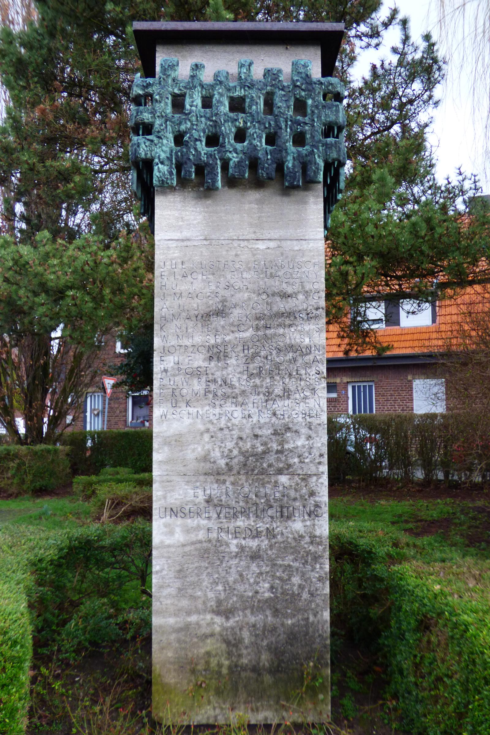 Standort: Honigmannplatz, D 41836 Hückelhoven - Schaufenberg GPS: 51o 03' 44,6" N 06o 12' 28,1" O Zuständigkeit: Stadt Hückelhoven Baujahr: Mitte 20. Jahrhundert |