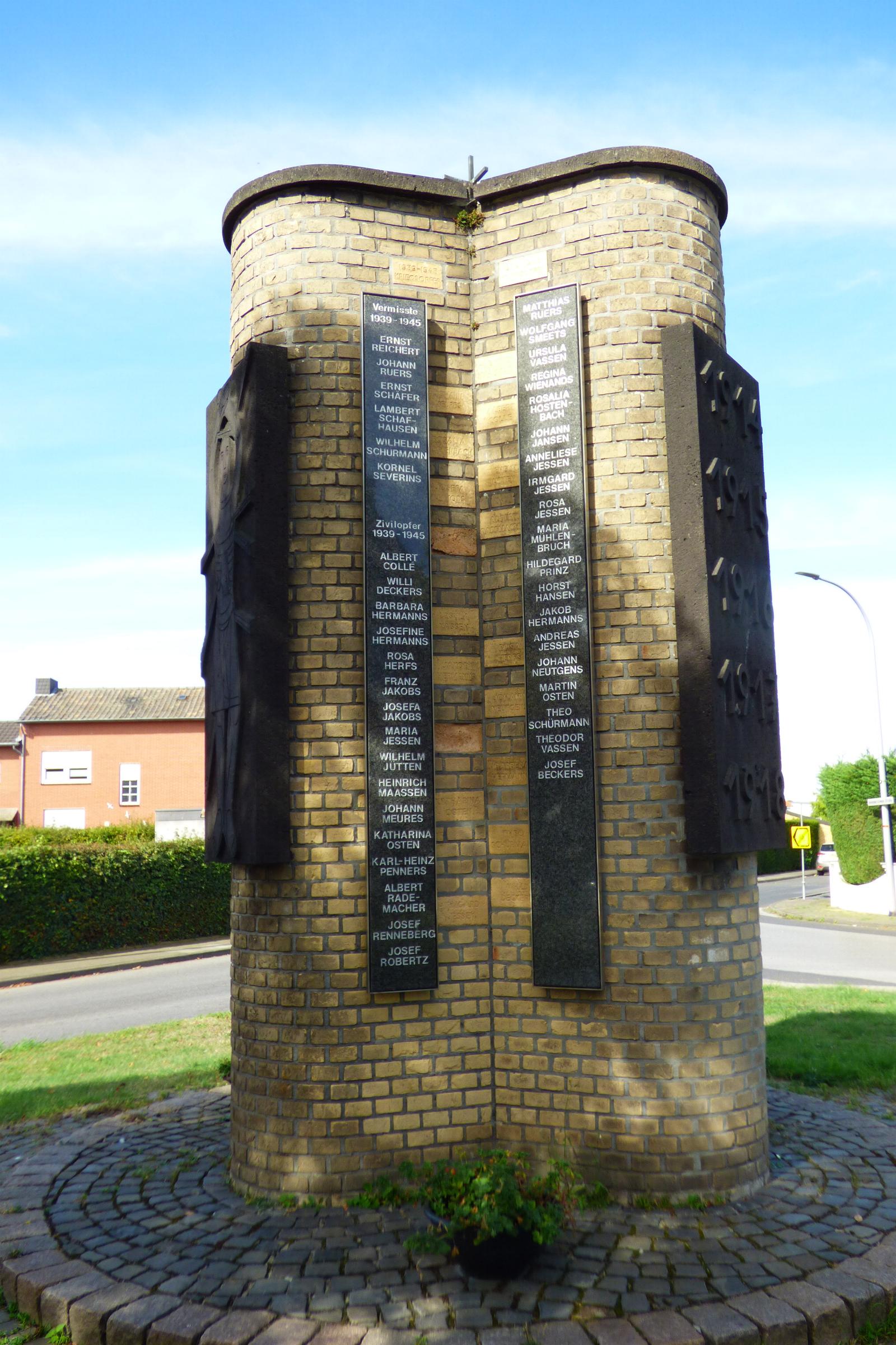 Standort: Das Ehrenmal befindet sich an der Straßenecke Geilenkirchener Straße / Bocksberg, im Ortsteil Tüddern, in der Gemeinde Selfkant. Geschichte: Das Ehrenmal besteht aus gemauerten Steinsäulen und mehreren Namenstafeln. Es wurde zu Ehren der Gefallenen und der Vermißten des Ersten und Zweiten Weltkrieges errichtet. Es soll den Überlebenden zur Mahnung und den Verstorbenen zur Ehre dienen. Quellenhinweis: * Gefallenendenkmal und Ehrenmal in Tüddern Onlineprojekt Gefallenendenkmälerr