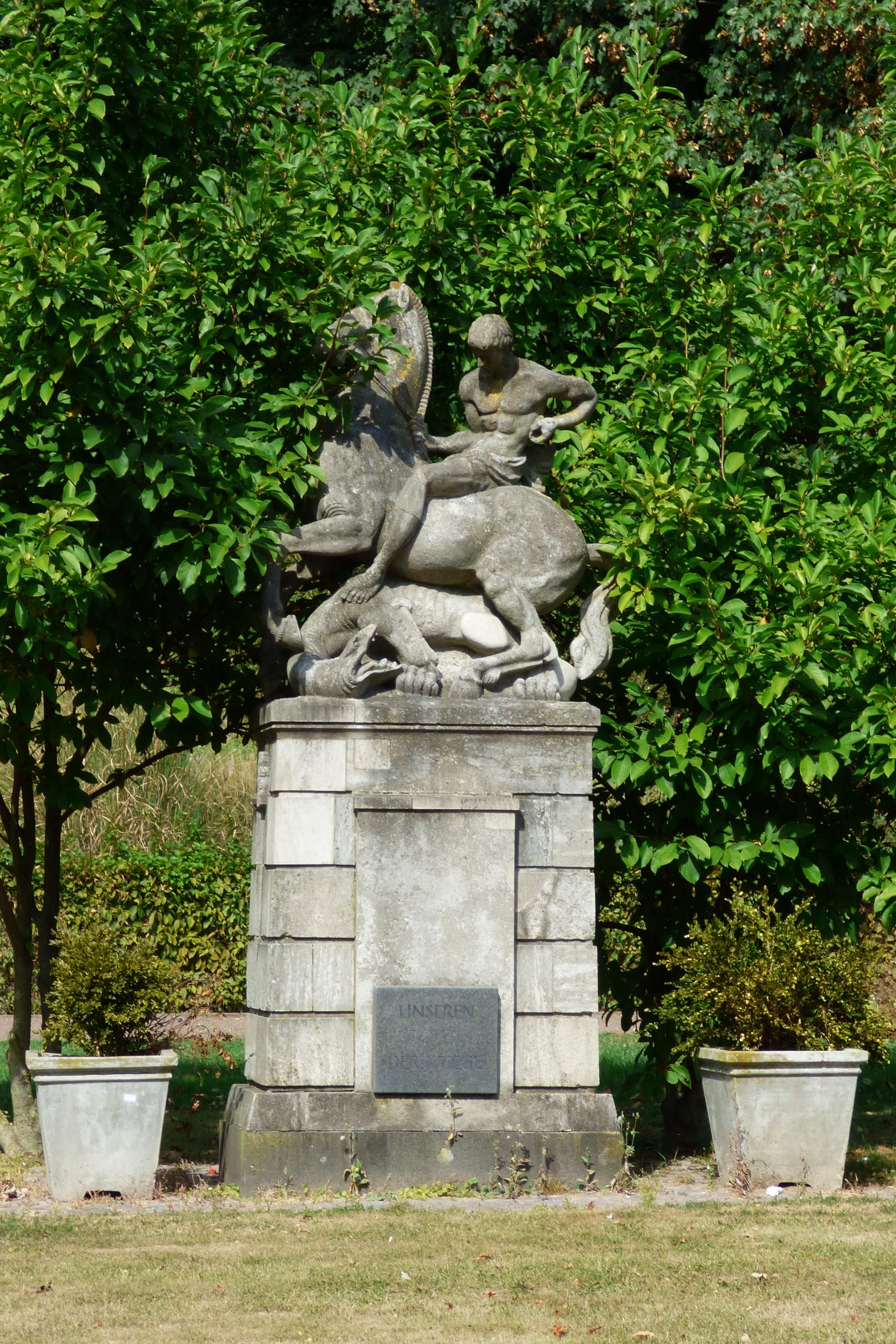 Standort: Das Kriegerehrenmal hat seinen Standort links neben der Georgskirche, an der Kirchstraße, in der Stadt Wassenberg. Beschreibung: Bei dem Kriegerdenkmal handelt es sich um eine Gedenkstätte für die gefallenen Soldaten des Weltkrieges 1914 - 1918. Auf einem Sockel ist das Standbild des Ritters Georg zu Pferde im Kampf mit den Drachen dargestellt. Quellenhinweis: * Verzeichnis: Christliche Kleindenkmale im Kreis Heinsberg (Wassenberg Nr. 15)