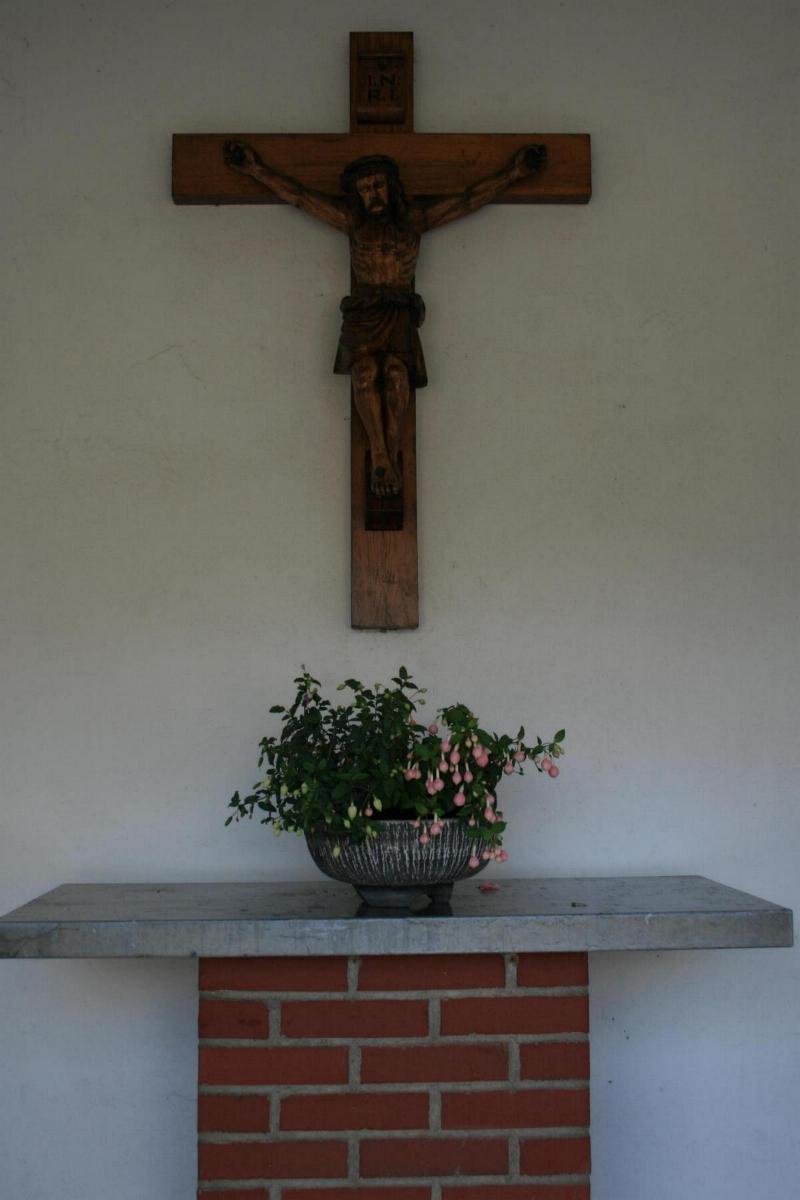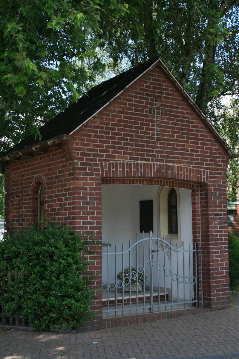 Standort: Die Betkapelle mit der Ehrentafel befindet sich an der Abzweigung Mailandweg / Burghofweg, im Stadtteil Büch in der Stadt Wegberg, im Kreis Heinsberg. Geschichte: An dieser Stelle stand früher das sog. Bücher-Kreuz, das für ganz Büch die alltägliche Betstelle für alle Angelegenheiten war. Leider mußte das alte Kreuz mit den kräftigen Linden dem Straßenbau weichen. Als Ausgleich wurde 1980 das neue Kapellchen erbaut. Das Grundstück wurde von privater Seite zur Verfügung gestellt. Die Kapelle wurde in Eigenleistung erbaut. Seit die Fronleichnams-Prozession wegen des gestiegenen Straßenverkehrs nicht mehr nach Büch geht, wird lediglich zur Bücher Kirmes am Kapellchen eine hl. Messe gelesen. Die Kapelle ist der Stolz aller Bücher bis in die jetzige Zeit geblieben. Architektur: Bei dem Gebäude handelt es sich um einen Backsteinbau mit einer offenen Giebelseite. Die Kapelle ist 465 cm hoch, 350 cm breit und 380 cm tief. An beiden Seiten befindet sich je ein rundbogiges Fenster. In der Kapelle ist ein Holzkreuz von 130 cm X 90 cm mit einem geschnitzten Holzkorpus von 75 cm höhe, sowie eine Gedenkplatte 70 cm X 49 cm X 2,5 cm aus Stein, für die verstorbenen Mitglieder des Schützenvereins und des Spielmannszug Büch. Ein Ziergitter verschönert den Eingangsbereich. Quellenhinweis: * Dritte Ausgabe 1994: Handbuch des Bistums Aachen ISBN 3-87448-172-7 S. 808 * Verzeichnis: Christliche Kleindenkmale im Kreis Heinsberg (Arsbeck 10)