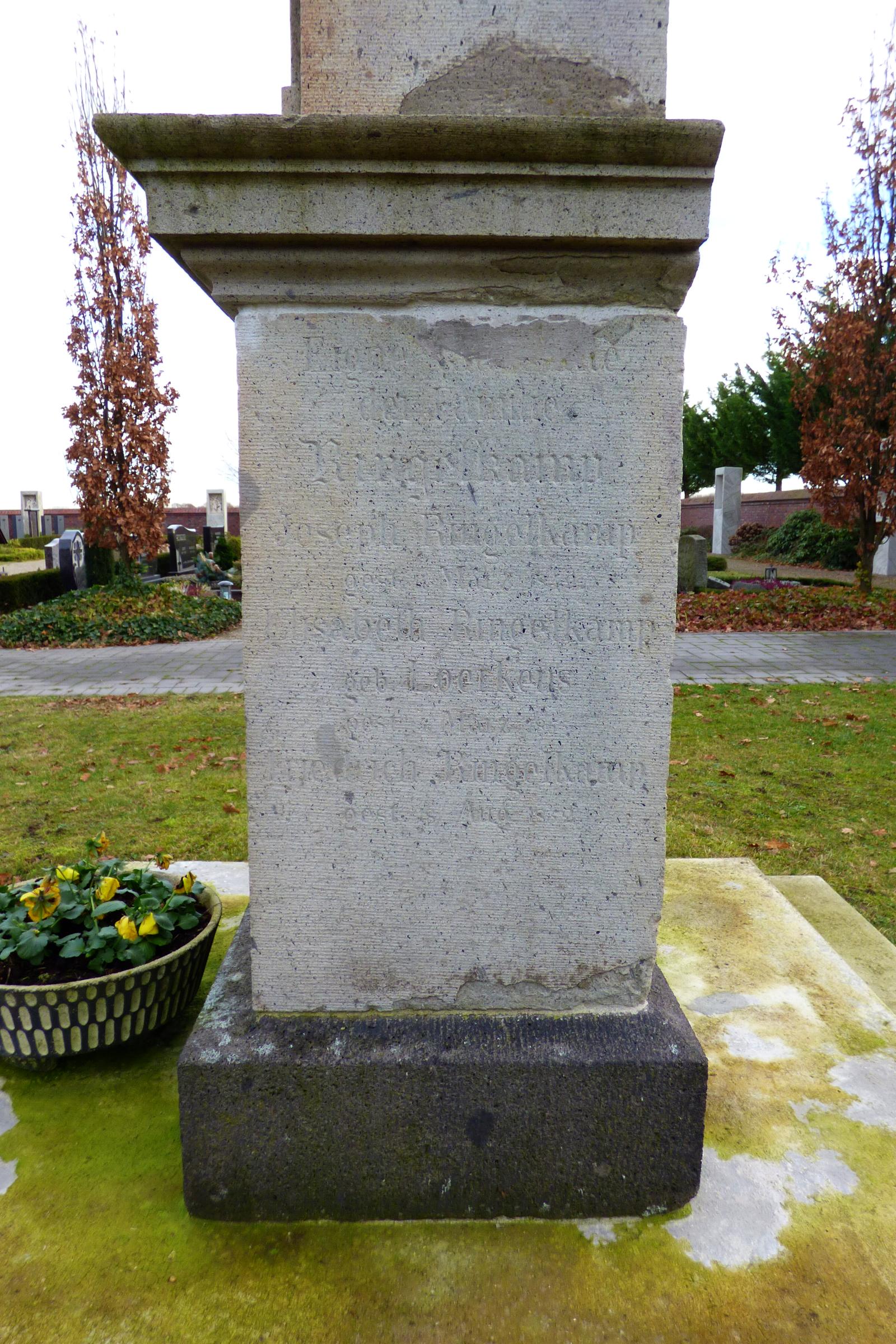 Inschrift der Familie Ringelkamp: Eigene Grabstätte der Familie Ringelkamp Joseph Ringelkamp + 4. März 1848 Elisabeth Ringelkamp geb. Loerkens + 4. März 1855 Friedrich Ringelkamp + 16. August 1852 Quellenhinweise: * Ein Ort der Hoffnung (RP-Online v. 6. Dezember 2009)