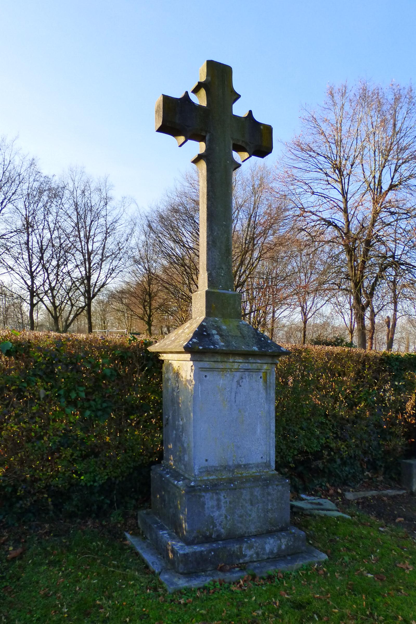 Standort: Das Friedhofskreuz befindet sich zentral auf dem Friedhof, an der Straße Am Kloster in Golkrath, in der Stadt Erkelenz. Beschreibung: Bei dem Friedhofskreuz handelt es sich um einen ehemaligen Grabstein das durch seine Formgebung besonders herausragt. Es ist 3,60 m hoch und wurde 1966 auf ein frei gewordenes Gräberfeld versetzt. Ein sogenanntes Hochkreuz ist im Bereich der Priestergräber ebenfalls 1966 aufgestellt worden. Das Friedhofskreuz ist Bestandteil der Friedhofanlage. Der Friedhof von Golkrath wurde 1852 angelegt, ein Jahr nach der Pfarrerhebung. Die Anlage wurde nicht, wie sonst üblich in der Nähe der Pfarrkirche angelegt, sondern an der heutigen Stelle. Der Friedhof wurde bis zum Jahre 1962 von der Kirchengemeinde verwaltet und unterhalten. Mit Genehmigung des Generalvikariats übernahm die Zivilgemeinde Golkrath ab dem 28. Oktober 1962 diese Aufgabe. Im Jahre 1964 wurde der Friedhof erheblich vergrößert und neu gestaltet. Dabei wurde der Eingang erneuert und ein neuer Belegungsplan erstellt. Quellenhinweis: * Schriftenreihe des Heimatvereins der Erkelenzer Lande e.V. Nr. 17 Zeichen am Wege S. 249 von Paul Blaesen * Dorfgemeinschaft Golkrath-Hoven e.V. Buchband Golkrath - Hoven früher und heute, Der Friedhof Seite 146