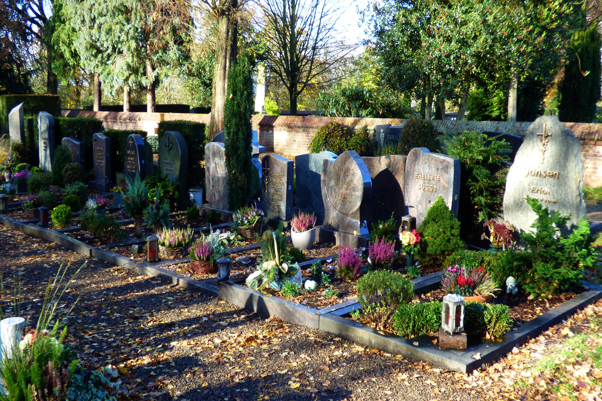 Standort: Die Friedhofanlage von Holzweiler befindet sich an der Landstraße, in der Stadt Erkelenz. Der Friedhof ist von einer 1,80 m hohen Ziegelsteinmauer umgeben. Der Eingang des Friedhofs befinden sich an der Nordseite. Beschreibung: Vom Regierungspräsidenten wurde die Schließung des alten Kirchhofs für den 1. Juli 1908 verfügt und gleichzeitig die Gemeinde Holzweiler aufgefordert, "schleunigst eine neue Begräbnisstätte anzulegen". Der Kampf um den neuen Friedhof war endlich beendet. Am 4. Oktober 1908 fand die Einsegnung statt. Noch im gleichen Jahr wurde in der Mitte ein großes Friedhofskreuz erbaut, gestiftet von Josef HERFS vom Eggeratherhof. Neben den Gräbern sind die Friedhofshalle, das Hochkreuz, die Priestergräber und die Kriegsgräber Bestandteile der Friedhofanlage. Quellenhinweis: * Schriftenreihe des Heimatvereins der Erkelenzer Lande e.V. Nr. 17 Zeichen am Wege S. 134 von Paul Blaesen * Der Friedhof Erkelenz - Holzweiler bei GenWiki
