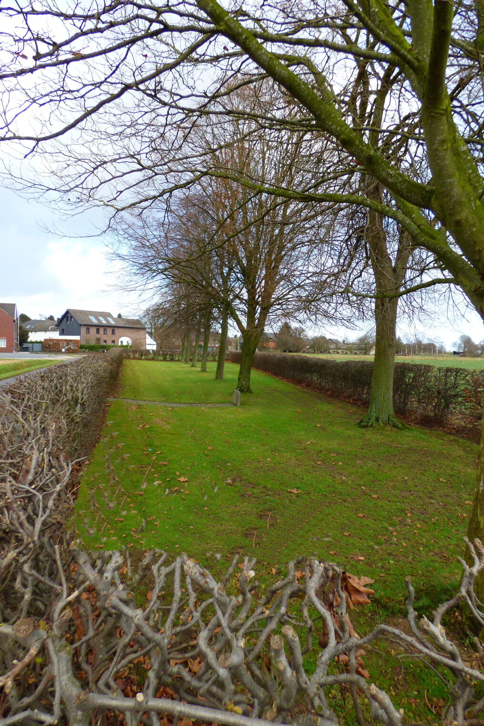 Baumreihe gestaltet. Zwei niedrige Tore gewähren den Zugang. Ein