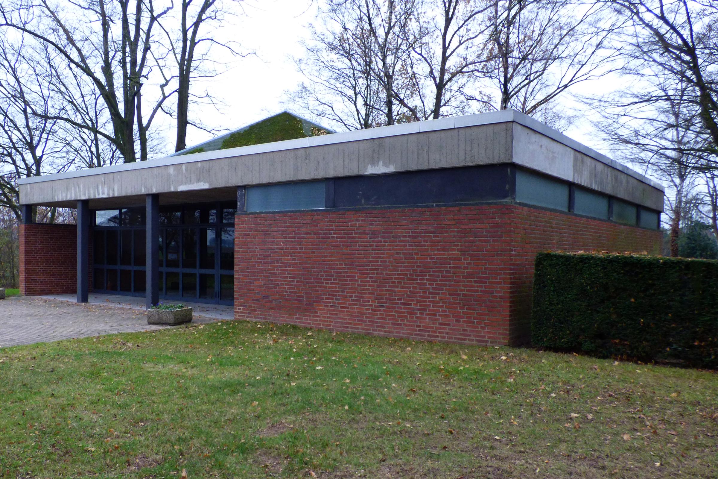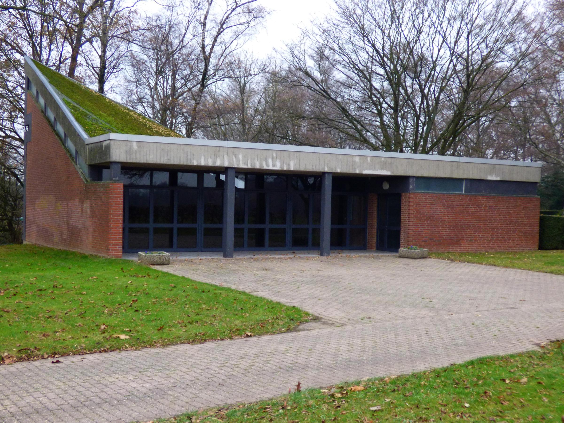 Standort: Die Friedhofshalle befindet sich auf dem Friedhof Lövenich, in der Stadt Erkelenz. Sie ist Bestandteil der Friedhofanlage. Beschreibung: Die Friedhofshalle ist ein schlichter, verklinkerter Ziegelsteinbau mit einem Flachdach. Eine schmale Buntverglasung befindet sich an der Südseite der Halle. Die Halle ist Ausgangspunkt für die Beerdigungen und Beisetzungen auf diesem Friedhof. Quellenhinweis: * Schriftenreihe des Heimatvereins der Erkelenzer Lande e.V. Nr. 17 Zeichen am Wege S. 101 von Paul Blaesen