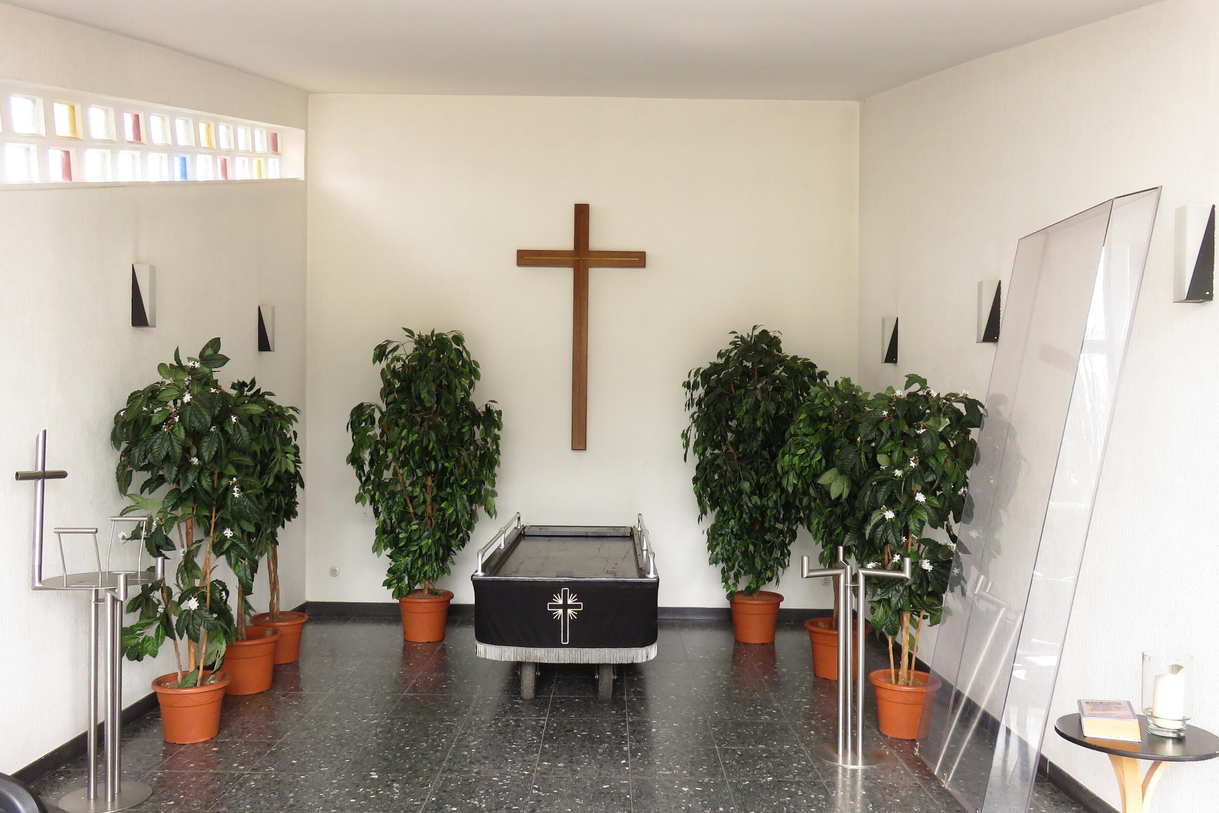 Standort: Die Friedhofshalle befindet sich an der Geneikener Straße in Schwanenberg, in der Stadt Erkelenz. Beschreibung: Der Friedhof in Schwanenberg wurde im Jahr 1834 angelegt. Die Friedhofshalle befindet sich auf dem neuen Teil des Friedhofs. Die Halle ist verklinkert und trägt ein nach innen geneigtes Flachdach. Sie ist Ausgangspunkt für die Beerdigungen und Beisetzungen auf diesem Friedhof. Die Friedhofshalle ist Bestandteil der Friedhofanlage. Quellenhinweis: * Schriftenreihe des Heimatvereins der Erkelenzer Lande e.V. Nr. 17 Zeichen am Wege S. 272 von Paul Blaesen