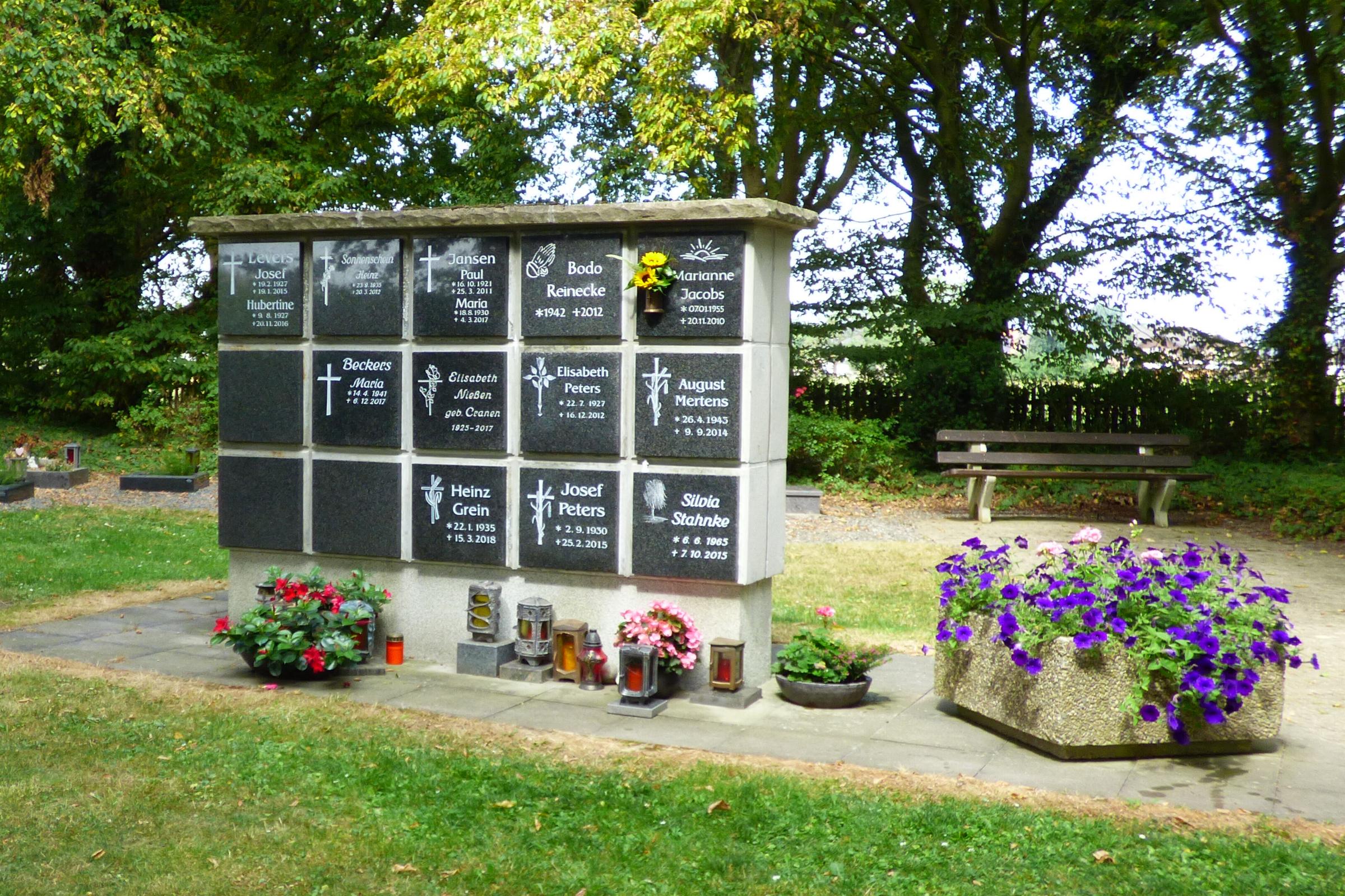 Standort: Das Kolumbarium befindet sich auf dem Friedhof, im südlichen Bereich des Ortsteils Langbroich, in der Gemeinde Gangelt Geschichte: Bei dem Kolumbarium handelt es sich um Grabkammern, die zur Aufnahme und Aufbewahren von Urnen dienen. Ähnlich wie in südlichen Ländern werden Kolumbarien auch auf unseren Friedhöfen ein zunehmender Bestandteil der Begräbniskultur.