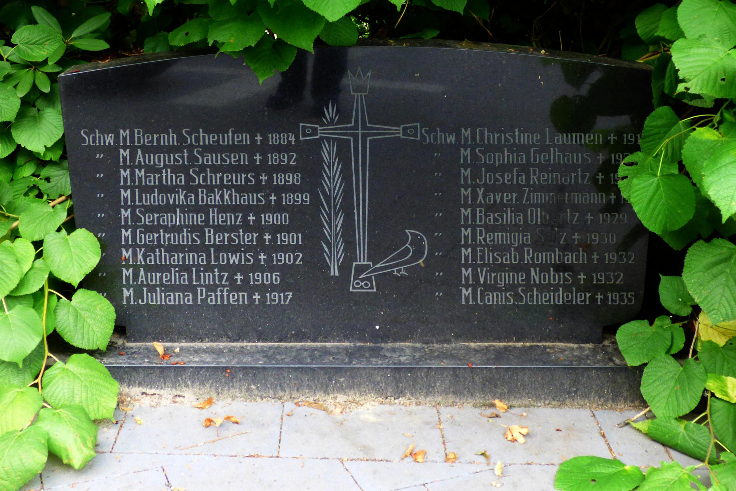 Standort: Die Ordensgräber befindet sich in der Nähe des Eingangs an der Heinsberger Straße des Friedhofs in der Stadt Geilenkirchen. Beschreibung: Auf dem Friedhof der Stadt Geilenkirchen sind 2 Anlagen mit Ordensgräbern angelegt. Auf der Anlage 1 wurden die Ordensschwestern von 1884 bis 1935 u. 1981 - 1993 beerdigt. Die Ordensgräber sind Bestandteil der Friedhofanlage. |