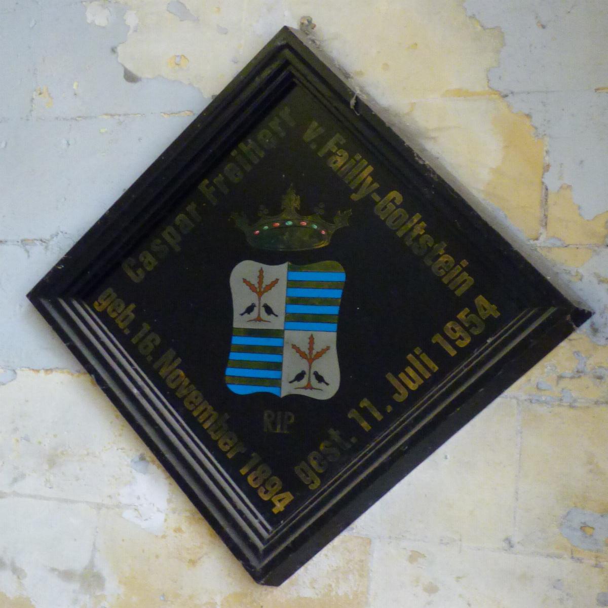 Standort: Die Historische Grabanlage befindet sich auf dem Friedhof an der Kirche St. Johann, im Stadtteil Hünshoven, in der Stadt Geilenkirchen. Beschreibung: Bei der Historischen Grabanlage handelt es sich um die Begräbnisstätte der Familie: Caspar Freiherr v. Failly - Goltstein geb. 16. November 1894, gest. 11 Juli 1954 Carl. Fr. Fr. geb. Freiin v. Wechmar geb. 29. Juni 1882, gest. 3. Juni 1970