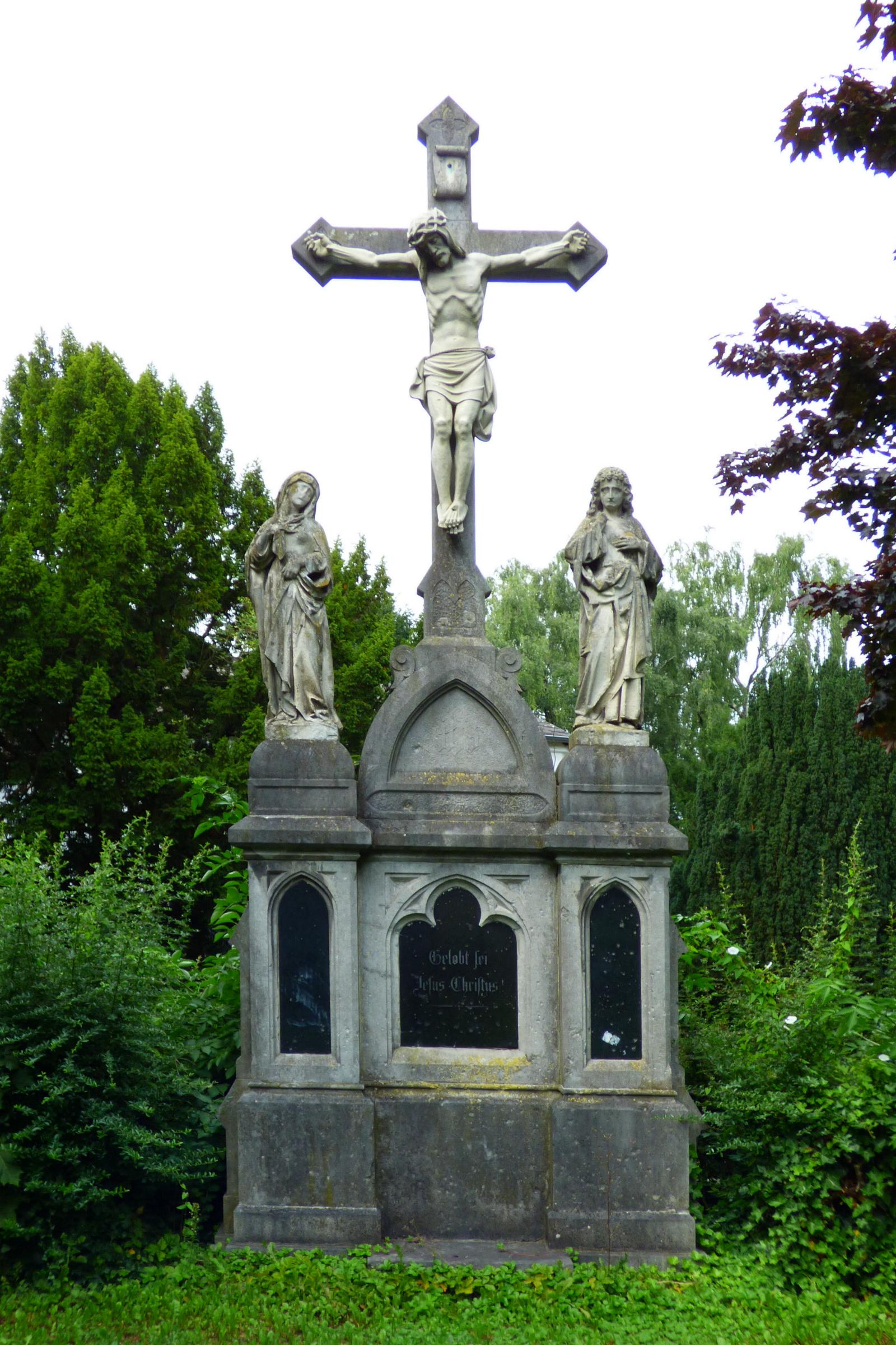 Standort: Das Triumphkreuz befinden sich auf dem Friedhof an der Kirche St. Johann, im Stadtteil Hünshoven, in der Stadt Geilenkirchen. Das Kreuz steht mit der Nr. 54 in der Denkmalliste der Stadt Geilenkirchen unter Denkmalschutz. Beschreibung: Bei dem Triumphkreuz handelt es sich um ein ca. 4,00 m hohes Kreuz mit einem Korpus und zwei Figuren zur rechten und linken Seite. Das Kreuz ist Bestandteil der Friedhofsanlage und stammt aus der Zeit um 1900. Die Inschrift lautet: Gelobt sei Jesus Christus Quellenhinweis * Denkmalliste Geilenkirchen, Nr. 54 Eintrag vom 22. August 1984