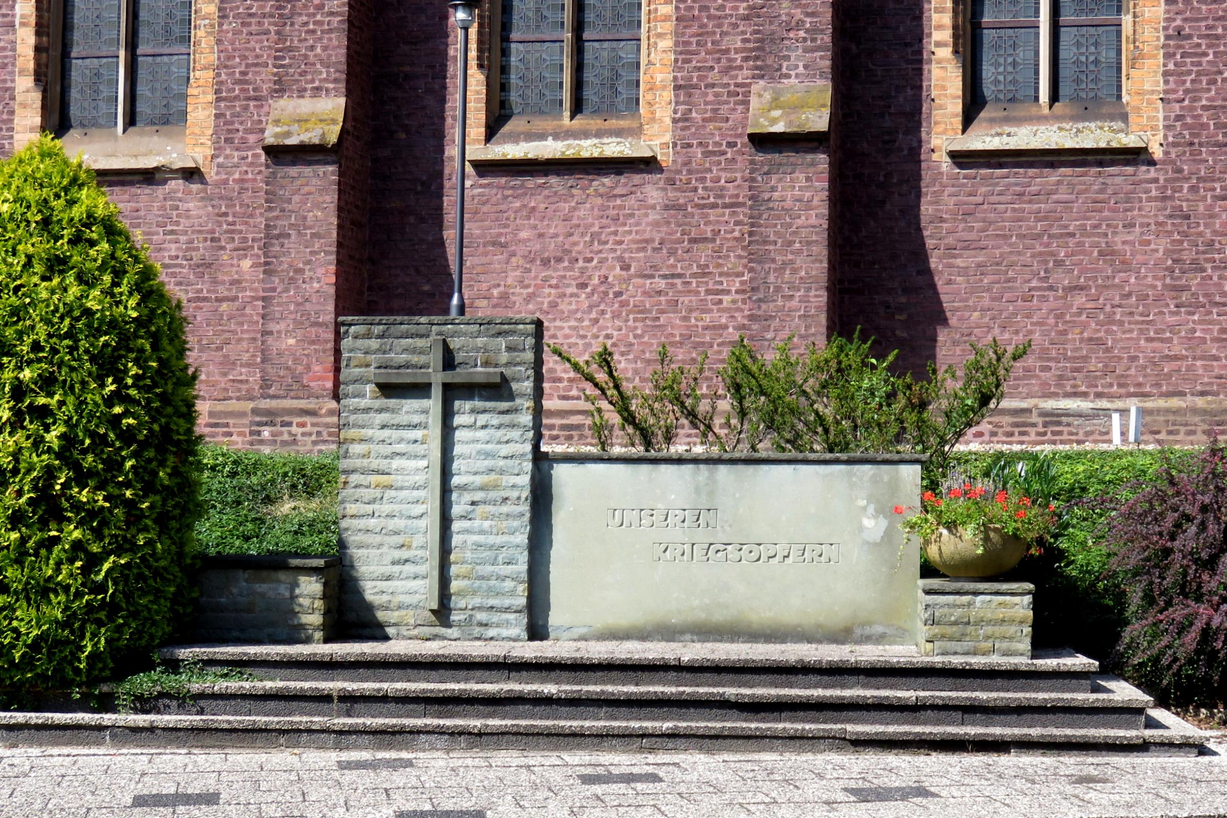Ehrenmal an der Kirche in Süggerath Standort: Das Ehrenmal befindet sich an der Jan von Werth Straße 81, an der Kirche im Stadtteil Süggerath, in der Stadt Geilenkirchen. Beschreibung: Das Ehrenmal in Süggerath wurde zu Ehren der Gefallenen und der Vermißten des Ersten und Zweiten Weltkrieges errichtet. Es soll den Überlebenden zur Mahnung und den Verstorbenen zur Ehre dienen. Die Inschrift lautet: U N S E R E N K R I E G S O P F E R N Quellenhinweis: * Gefallenendenkmal in Süggerath (Onlineobjekt Gefallenendenkmäler)