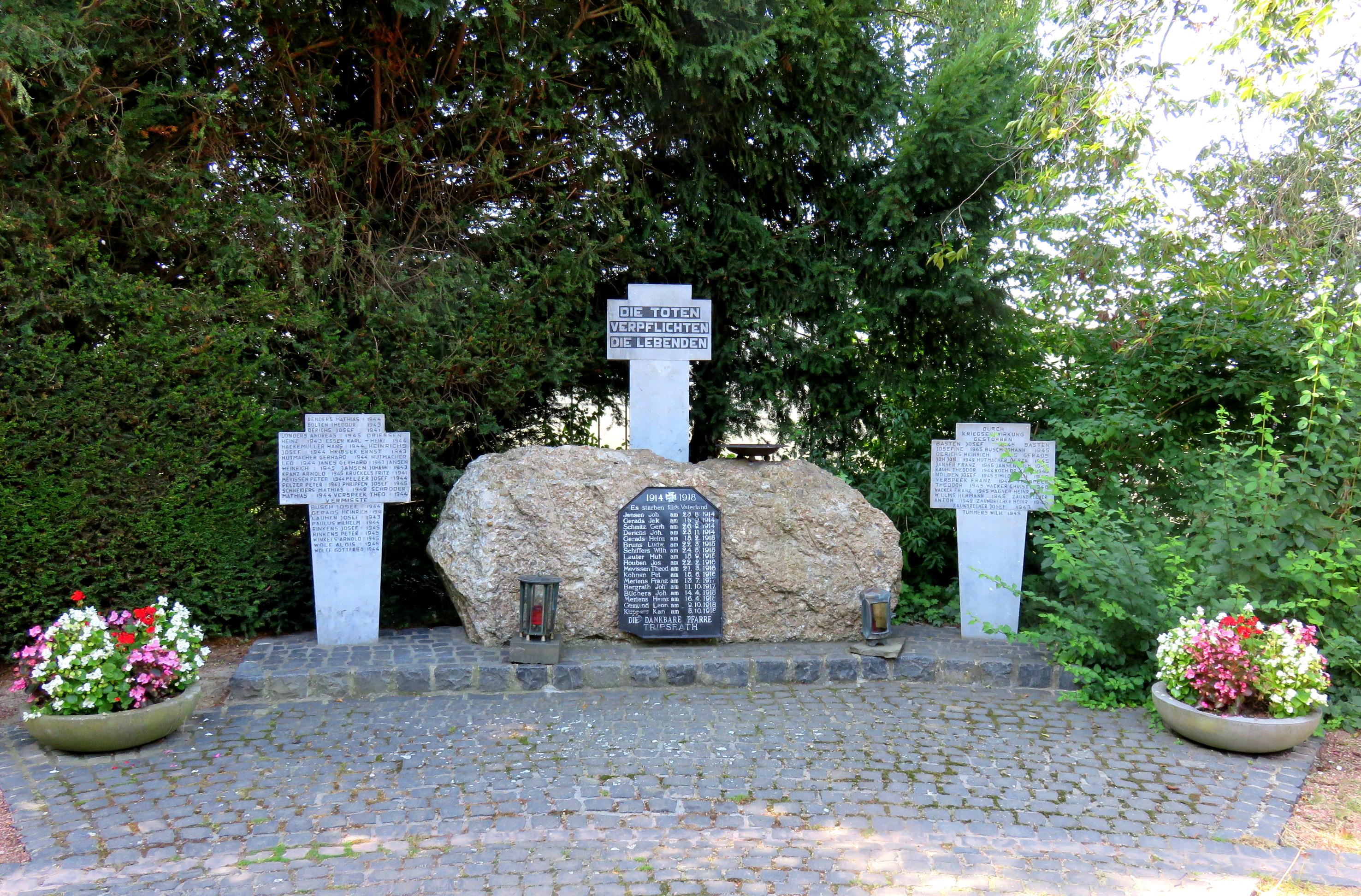 Das Ehrenmal in Tripsrath wurde zu Ehren der Gefallenen und der Vermißten des Ersten und Zweiten Weltkrieges errichtet. Es soll den Überlebenden zur Mahnung und den Verstorbenen zur Ehre dienen. Die Inschrift lautet: