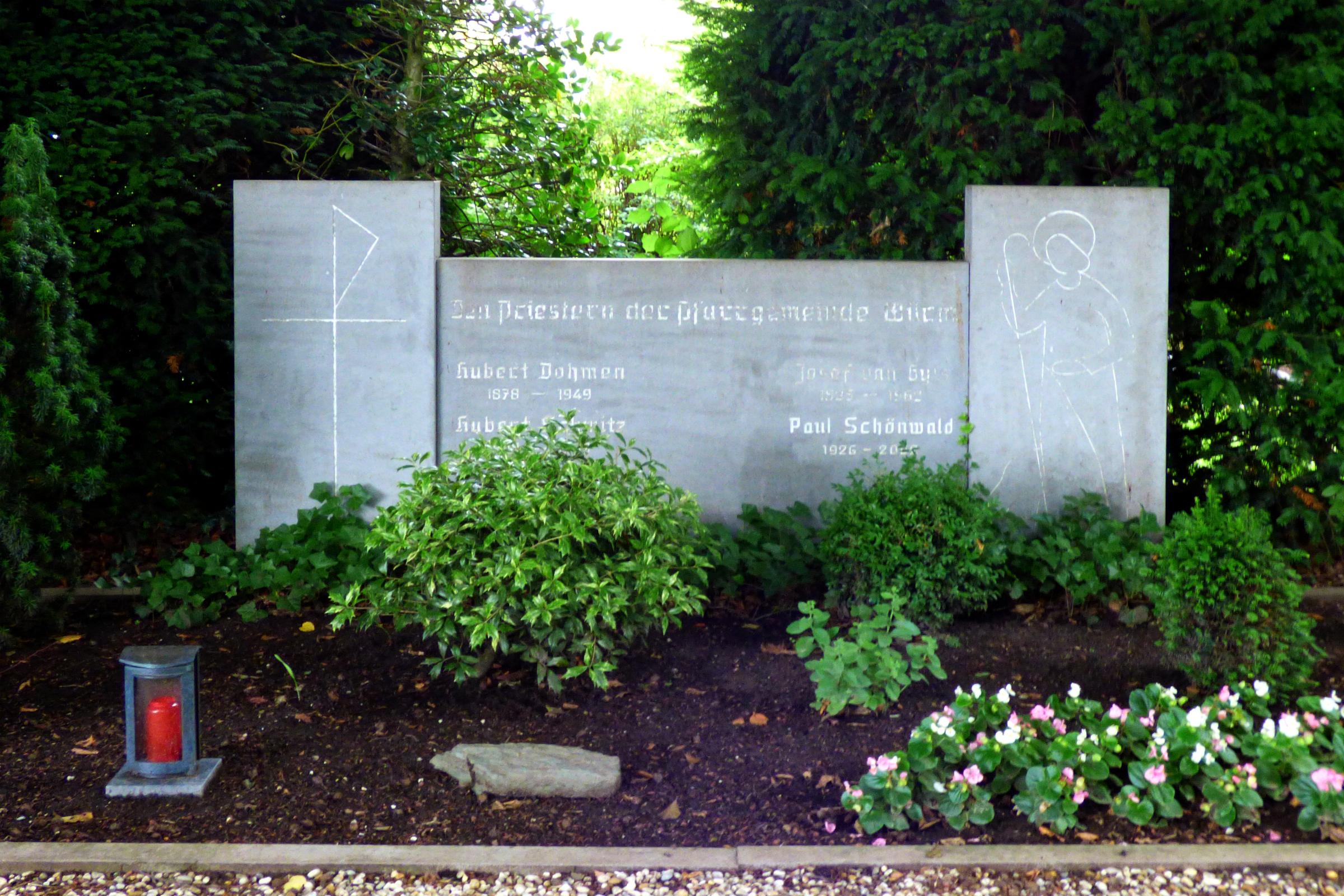 Standort: Die Priestergrabstätten befinden sich auf dem Friedhof an der Klosterstraße 31, im Stadtteil Würm, in der Stadt Geilenkirchen. Sie sind Bestandteil der Friedhofanlage in Würm. Beschreibung: Bei der Priestergrabstätte handelt es sich um einen ca. 3,50 m breiten Grabstein, auf den die Namen der verstorbenen und hier beerdigten Priester geschrieben stehen.