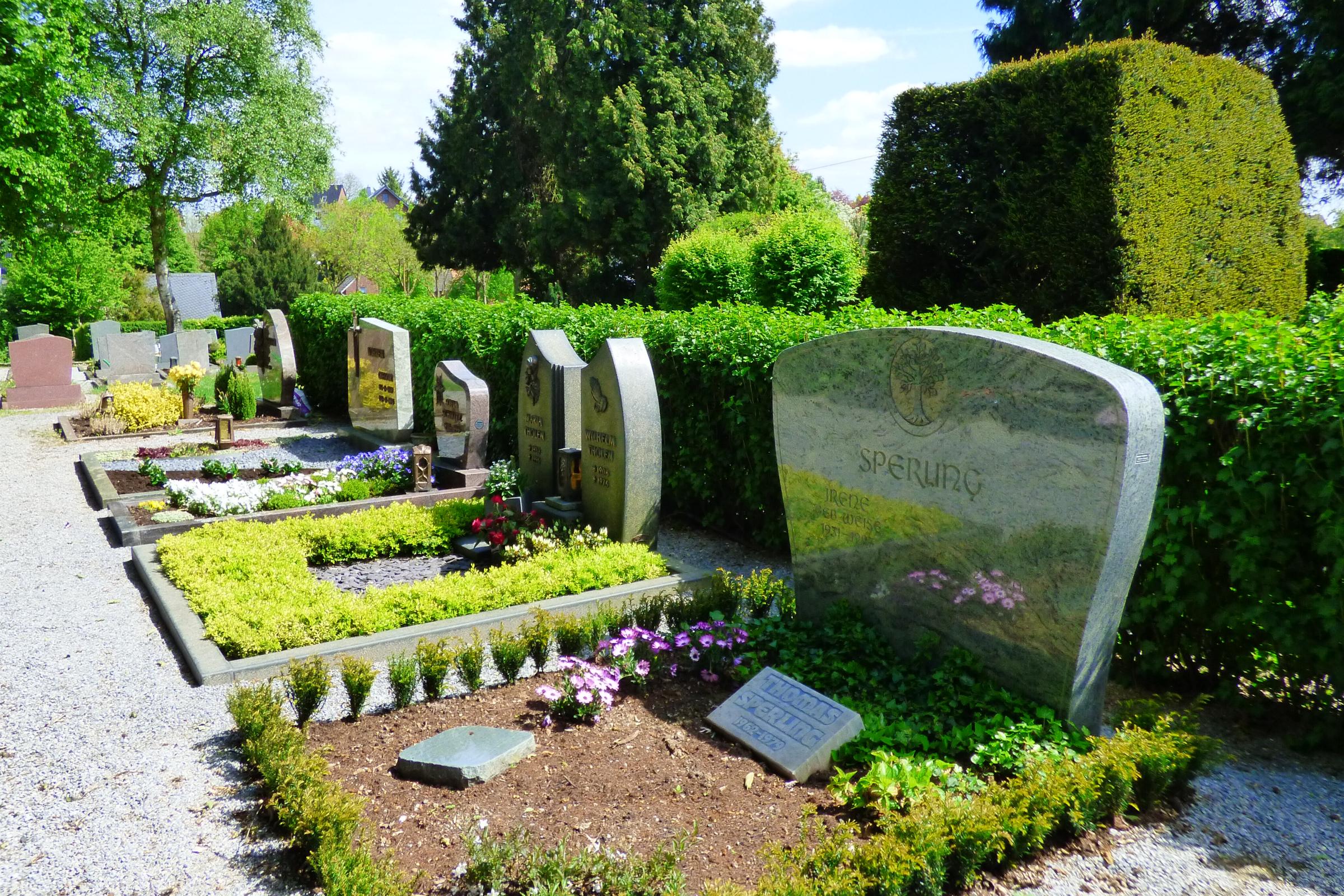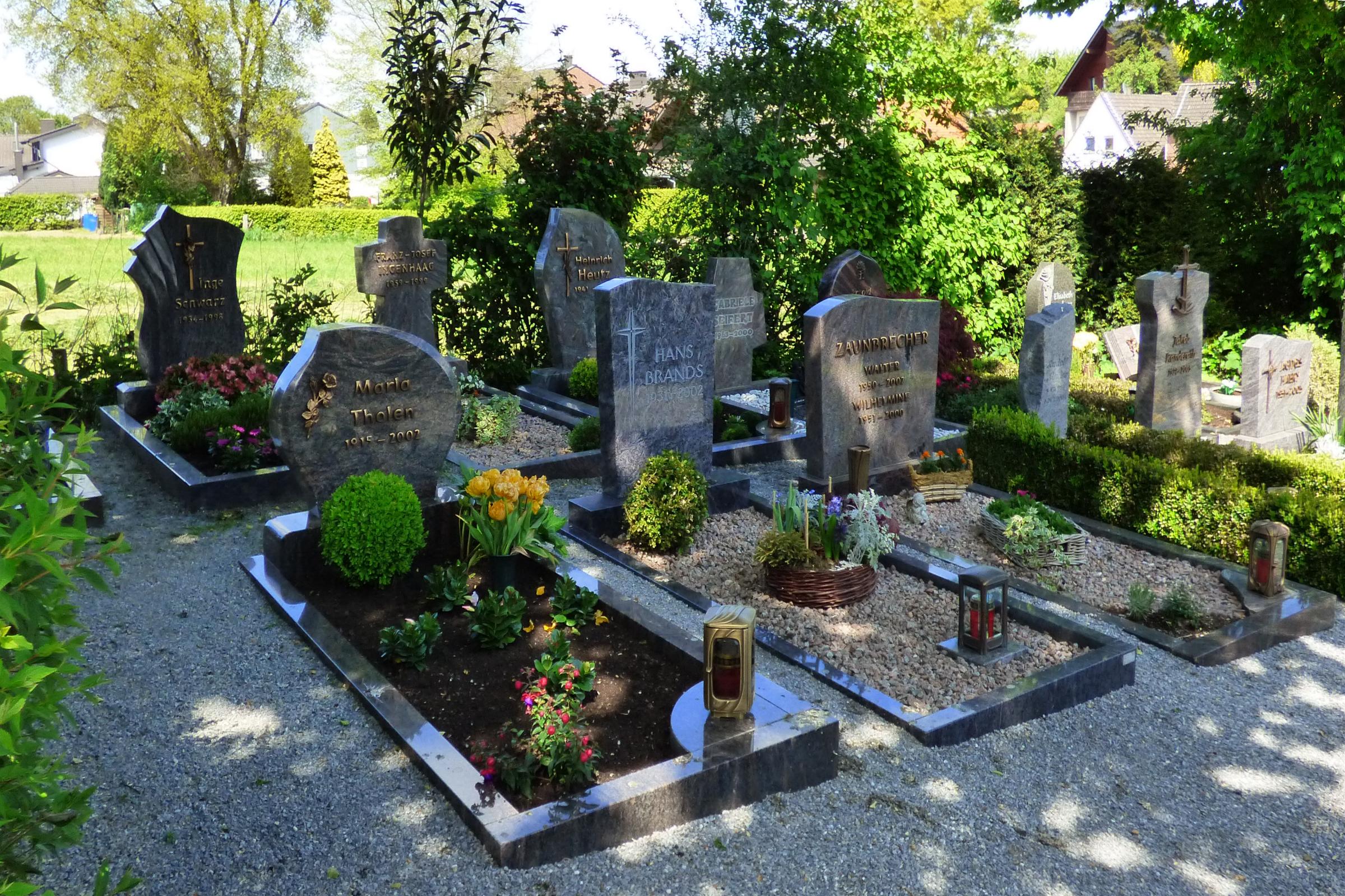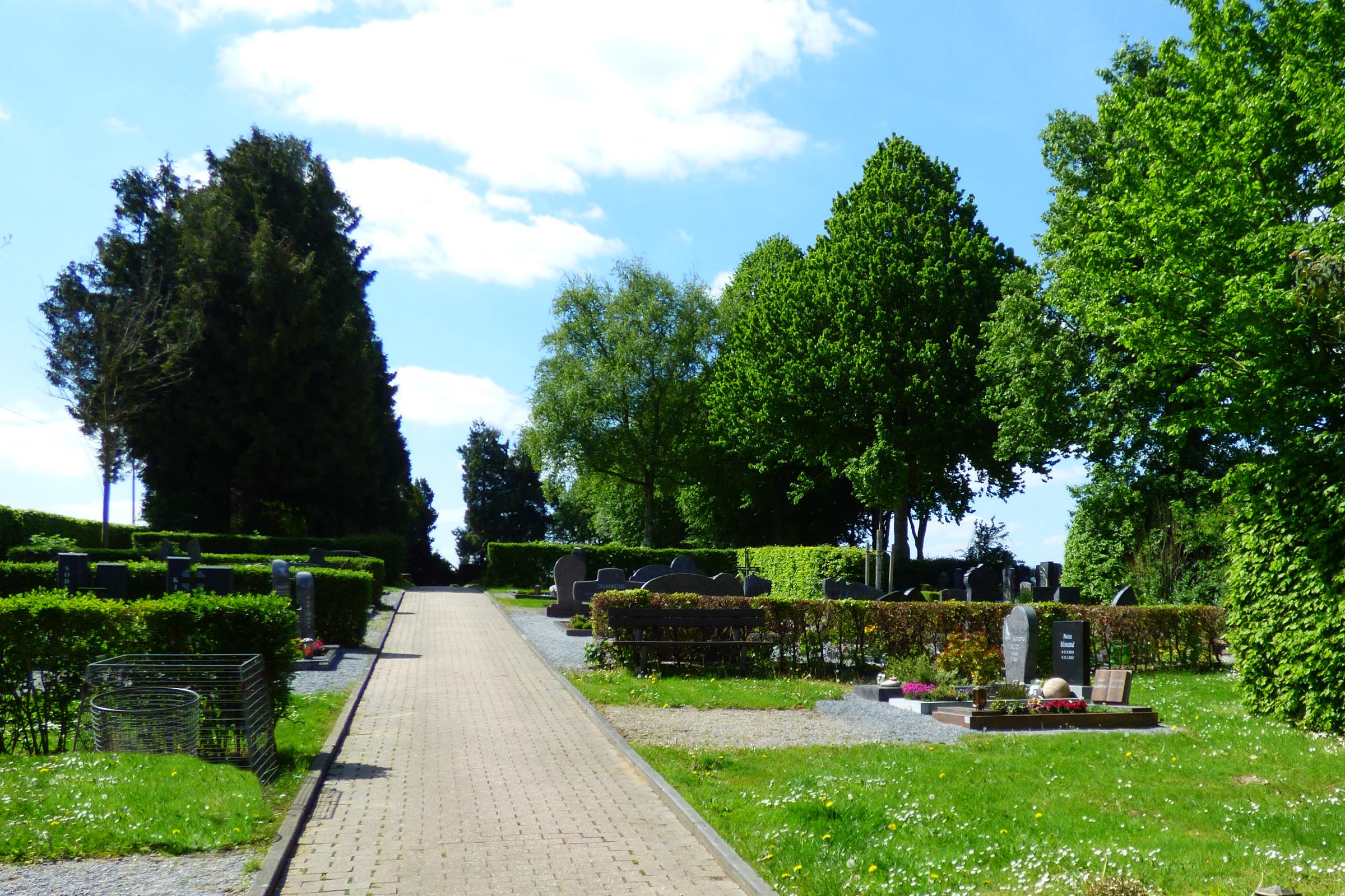 Standort: Die Friedhofanlage befindet sich an der Talstraße 147 im Stadtteil Aphoven in der Stadt Heinsberg. Beschreibung: Der Friedhof liegt neben dem Dorfplatz und ist mit einer Hecke umgeben. Das Friedhofskreuz, die Priestergräber, und die Friedhofshalle sind Bestandteile der Friedhofanlage.